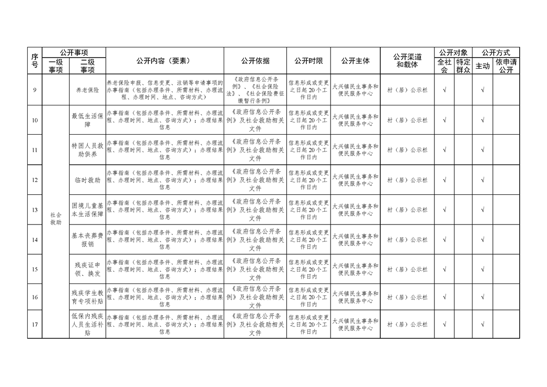 宿豫區大興鎮面向村居基層政務公開標準目錄(2025年版)