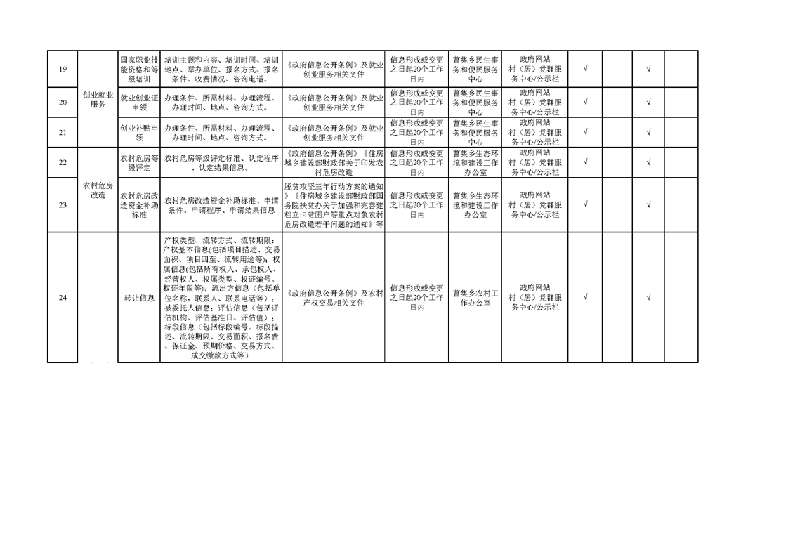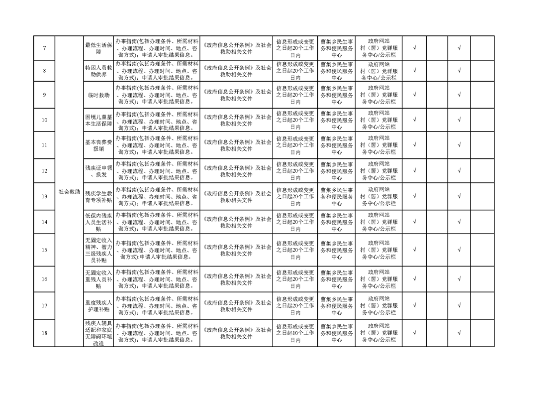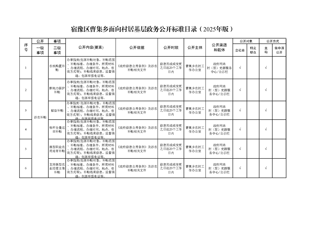 宿豫區曹集鄉面向村居基層政務公開標準目錄(2025年版)