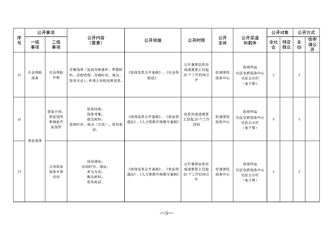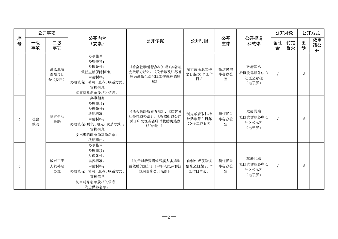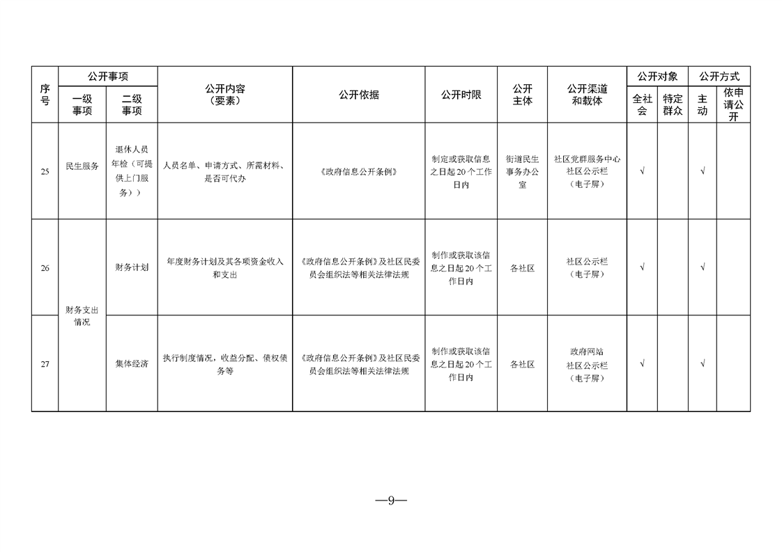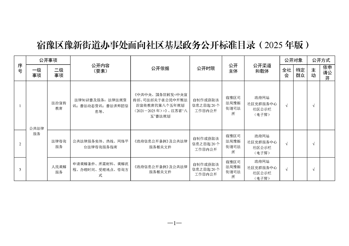 宿豫區豫新街道辦事處面向社區基層政務公開標準目錄(2025年版)