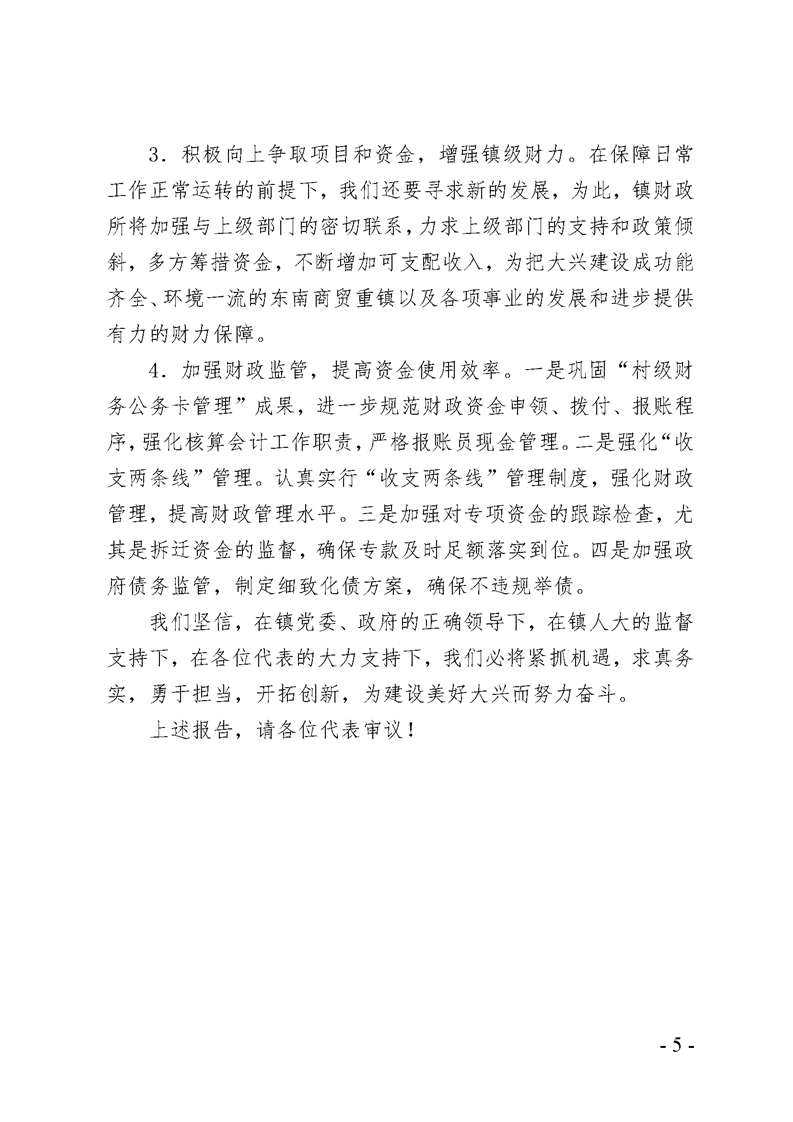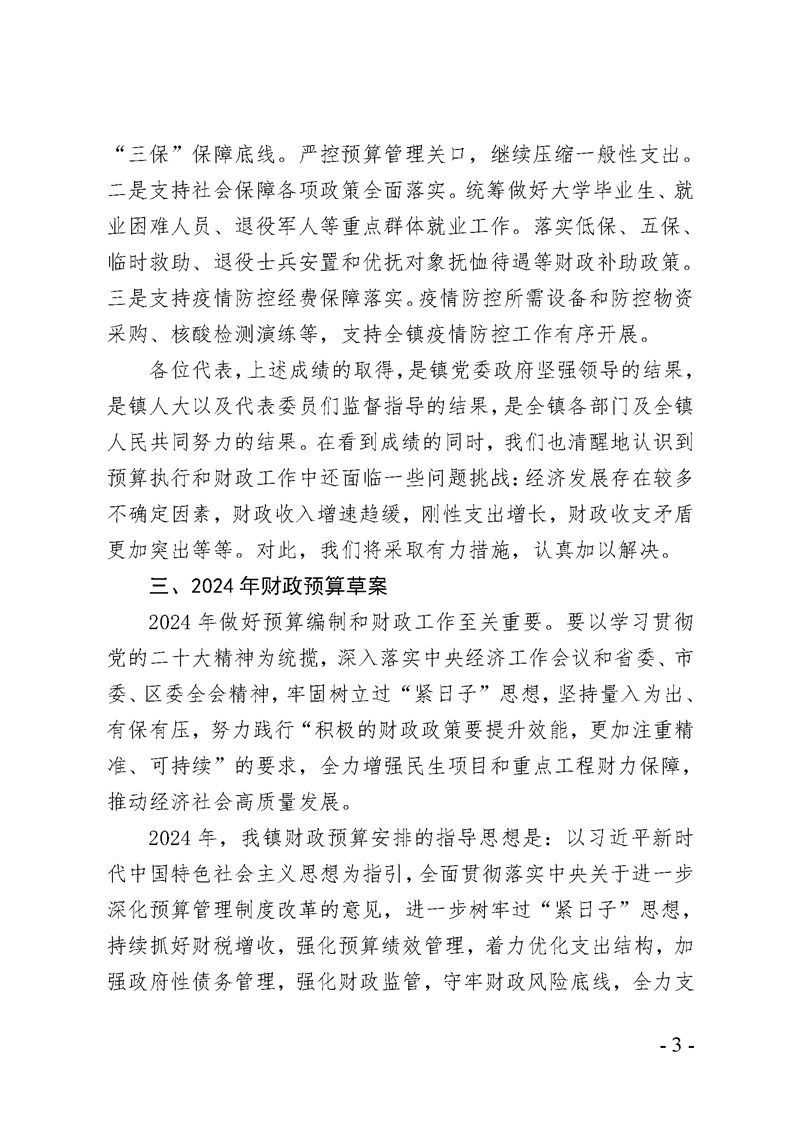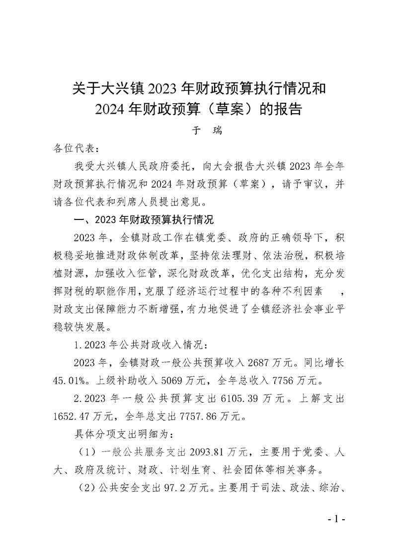 大興鎮2023年財政預算執行情況和2024年財政預算(草案)的報告
