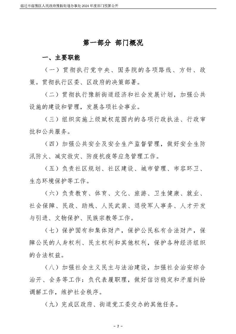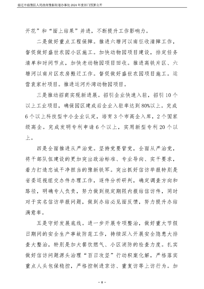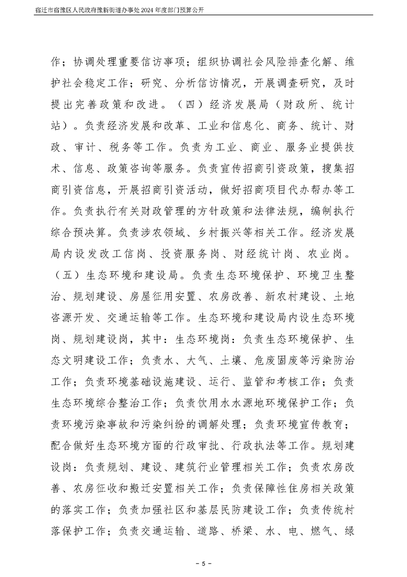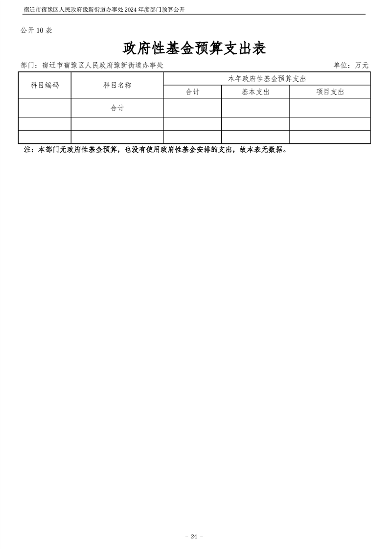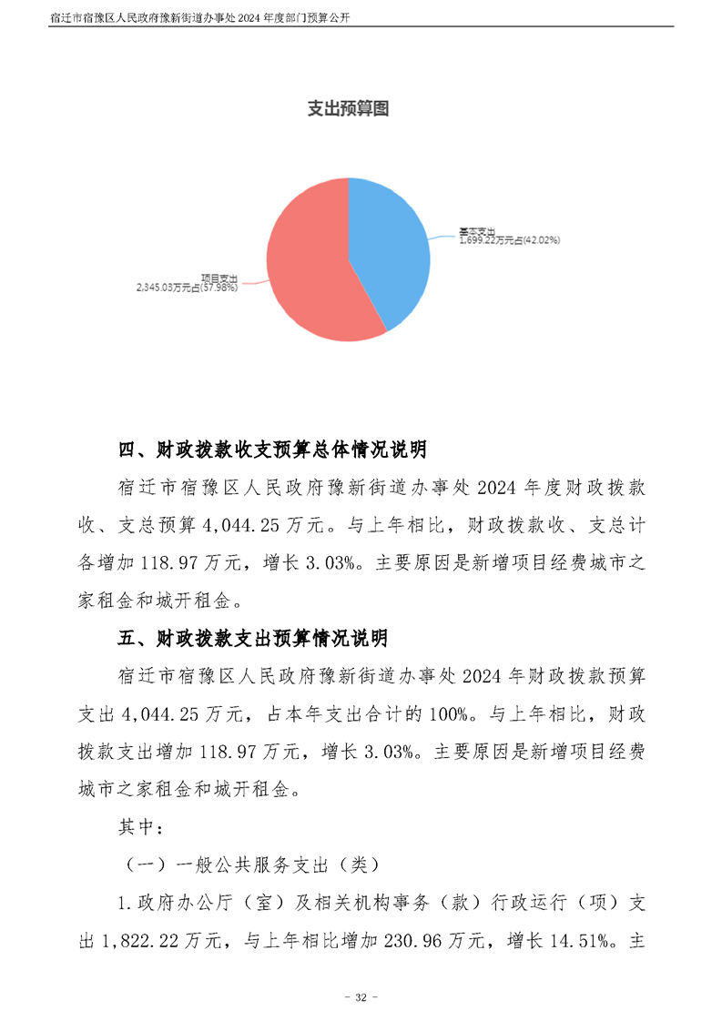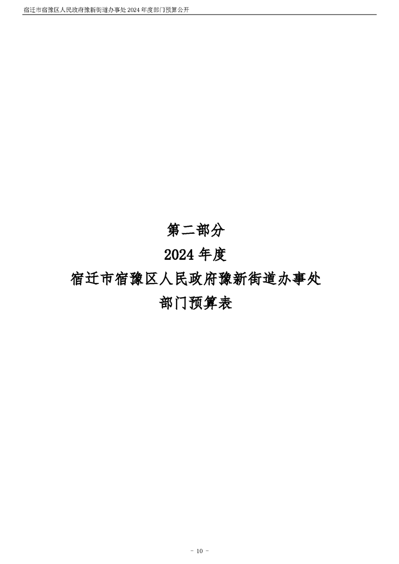 宿遷市宿豫區人民政府豫新街道辦事處2024年度部門預算公開