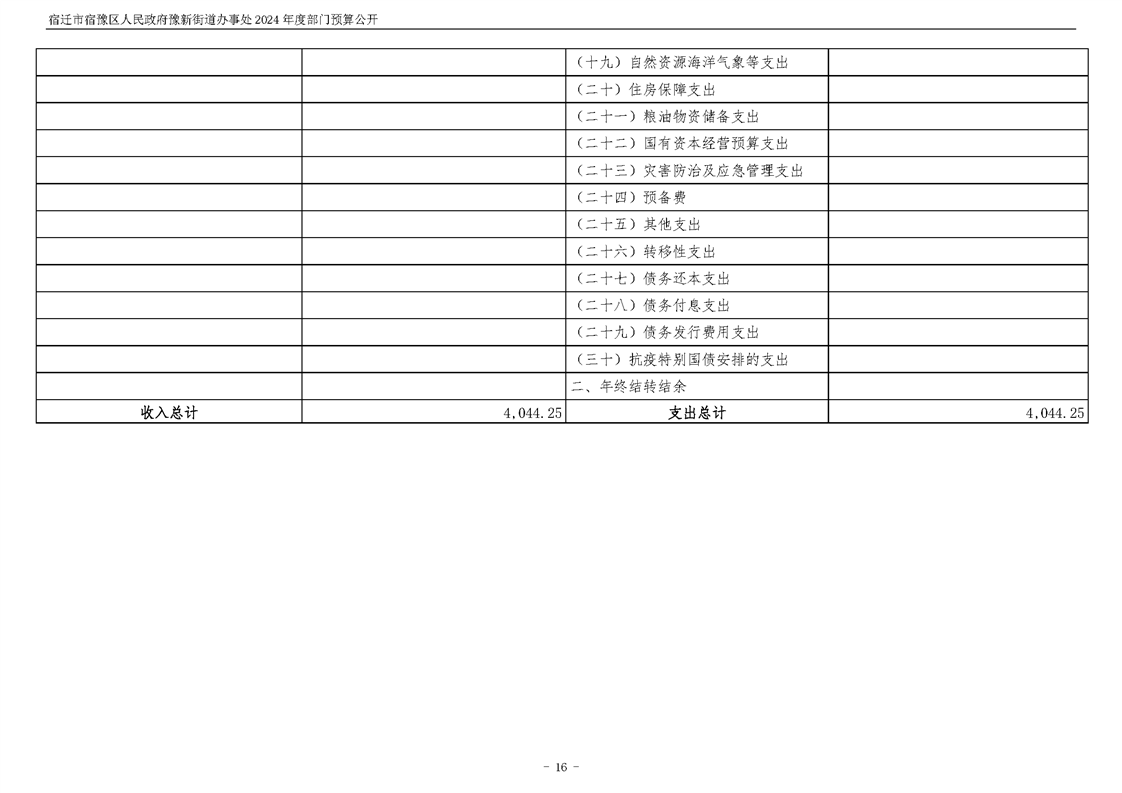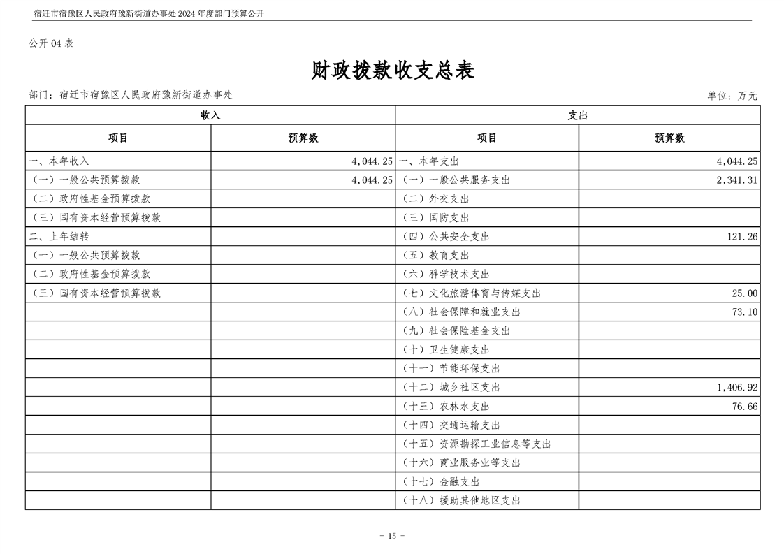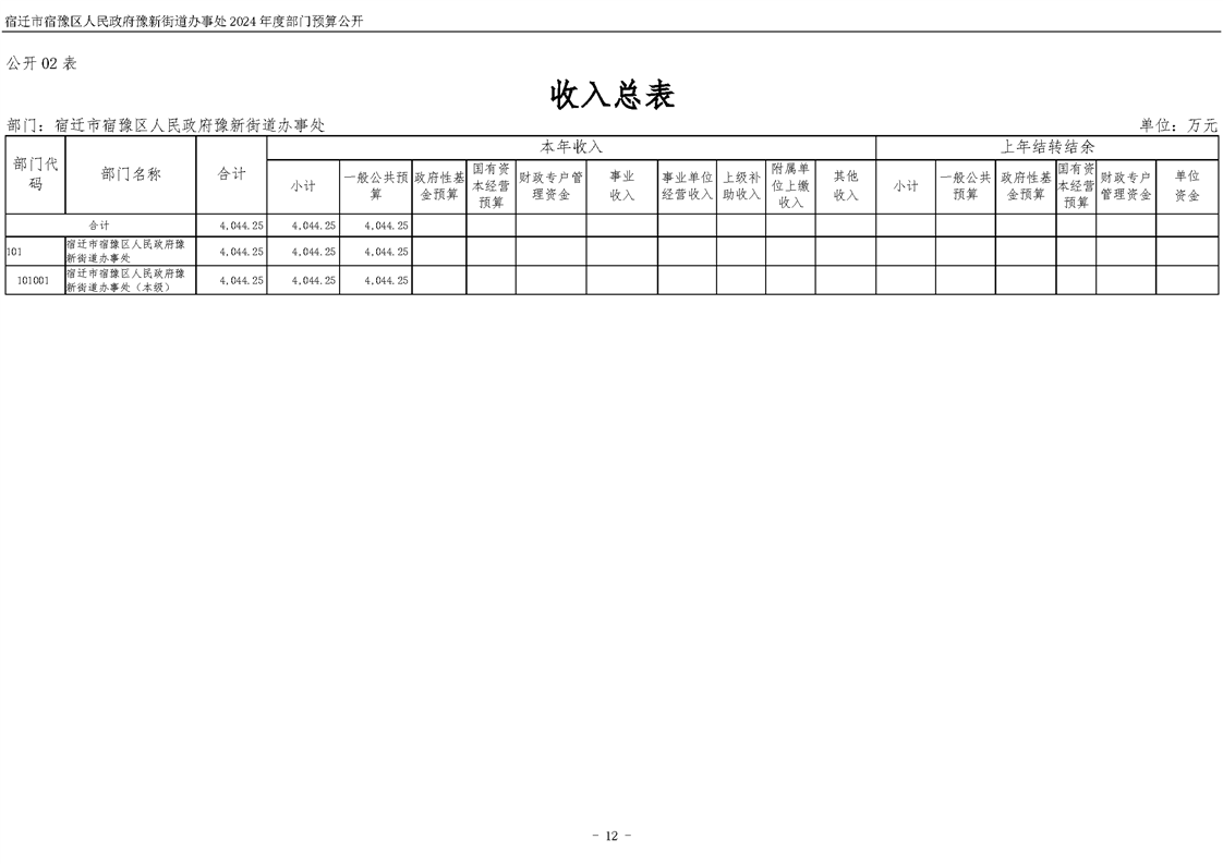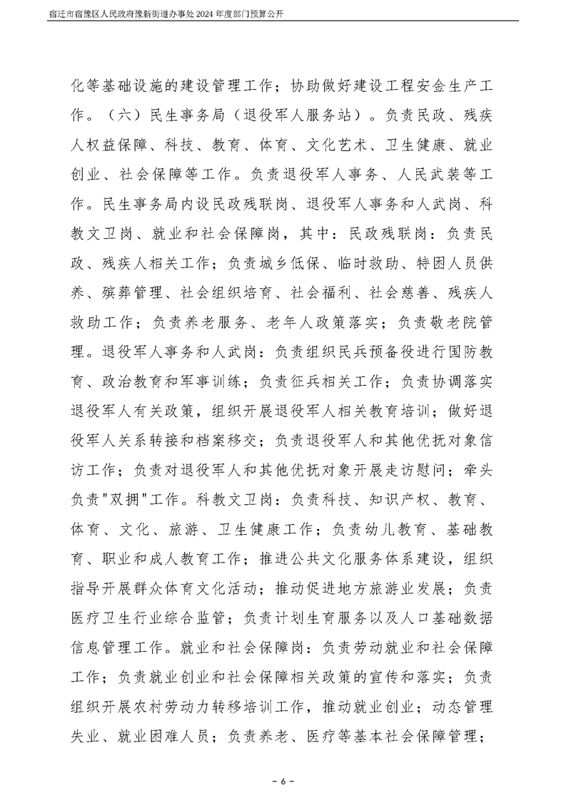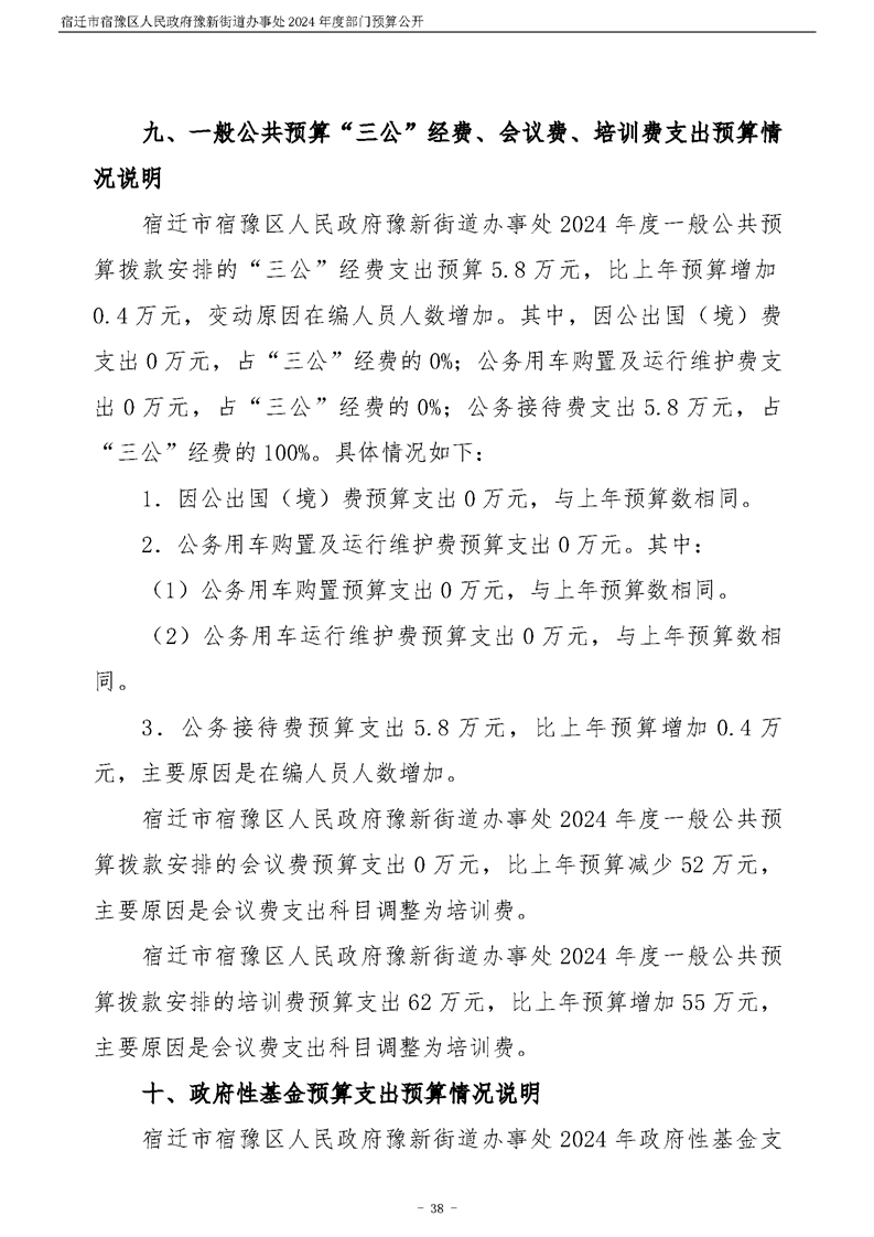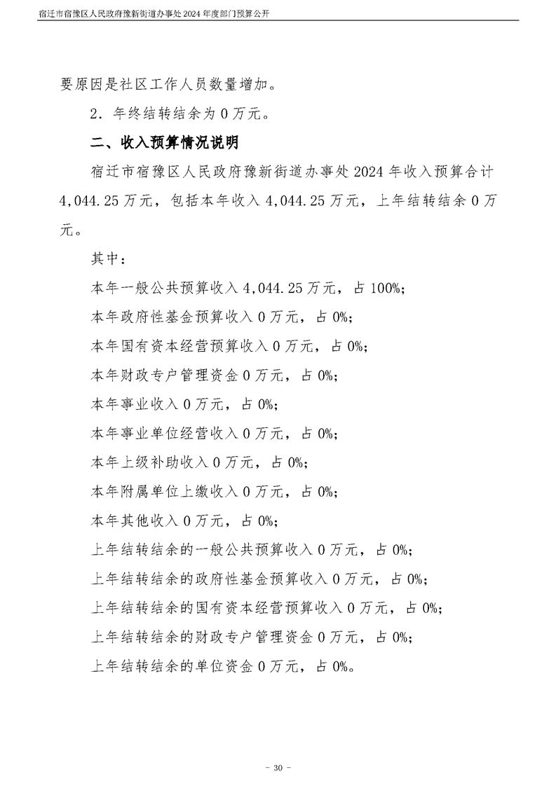 宿遷市宿豫區人民政府豫新街道辦事處2024年度部門預算公開