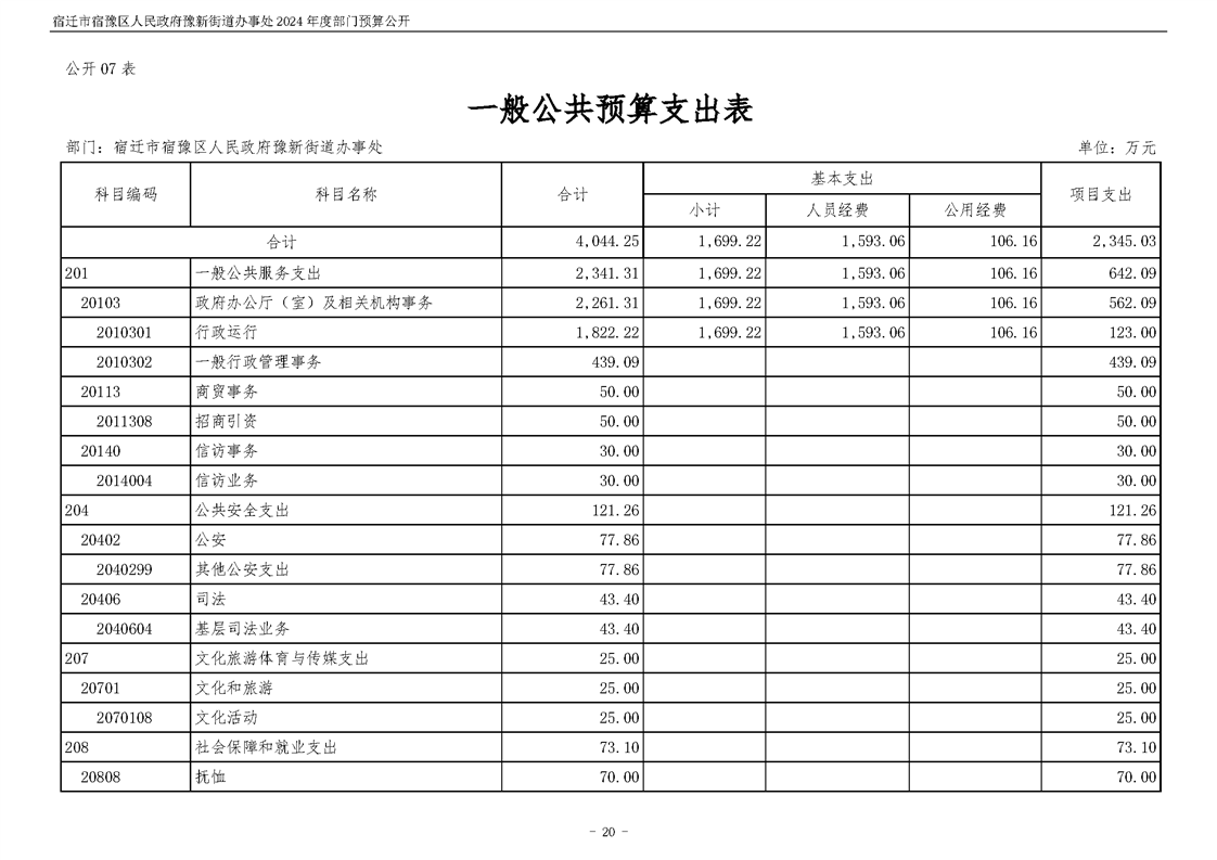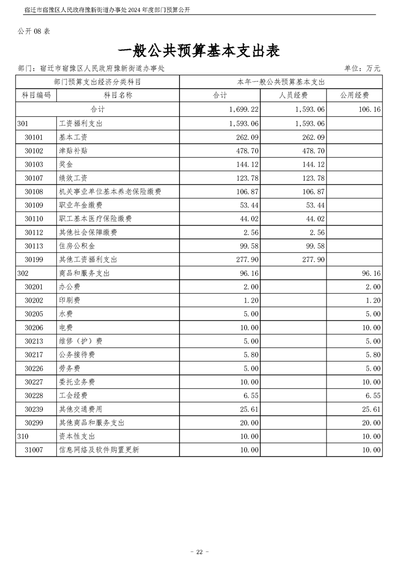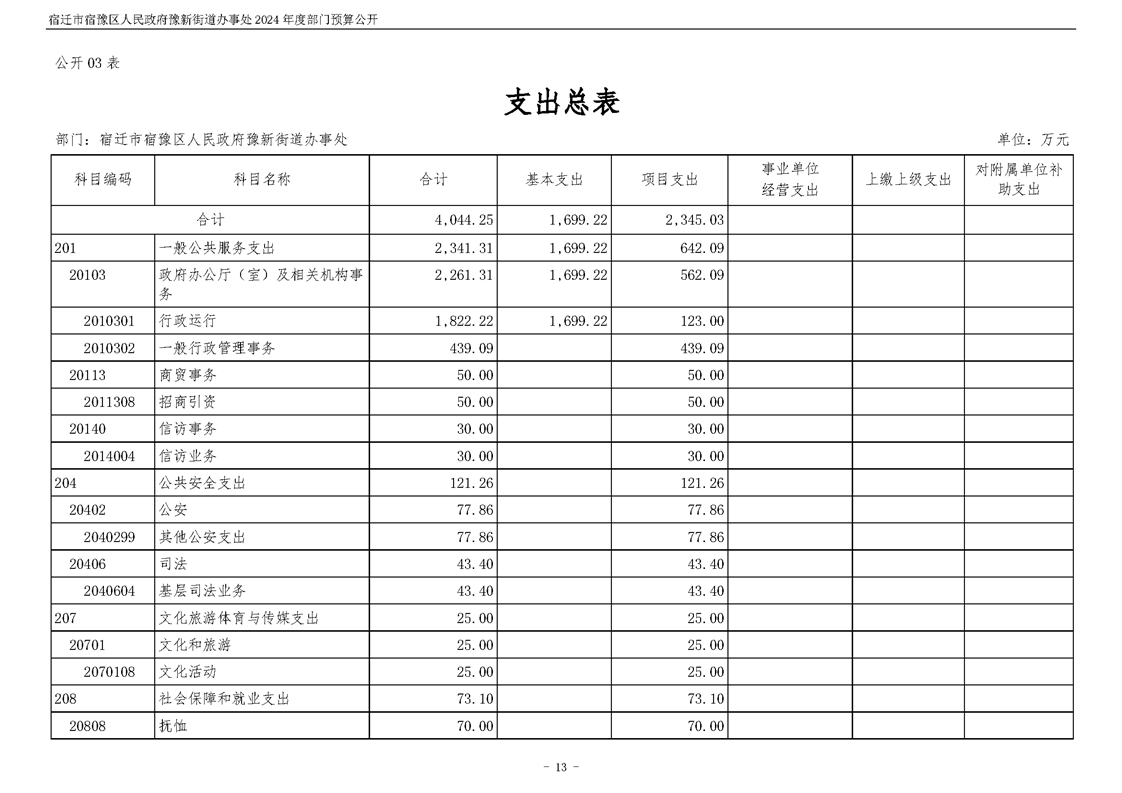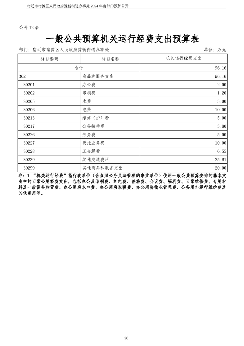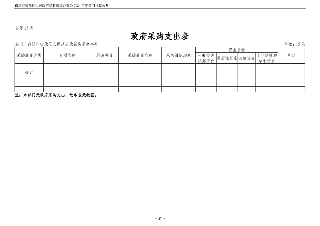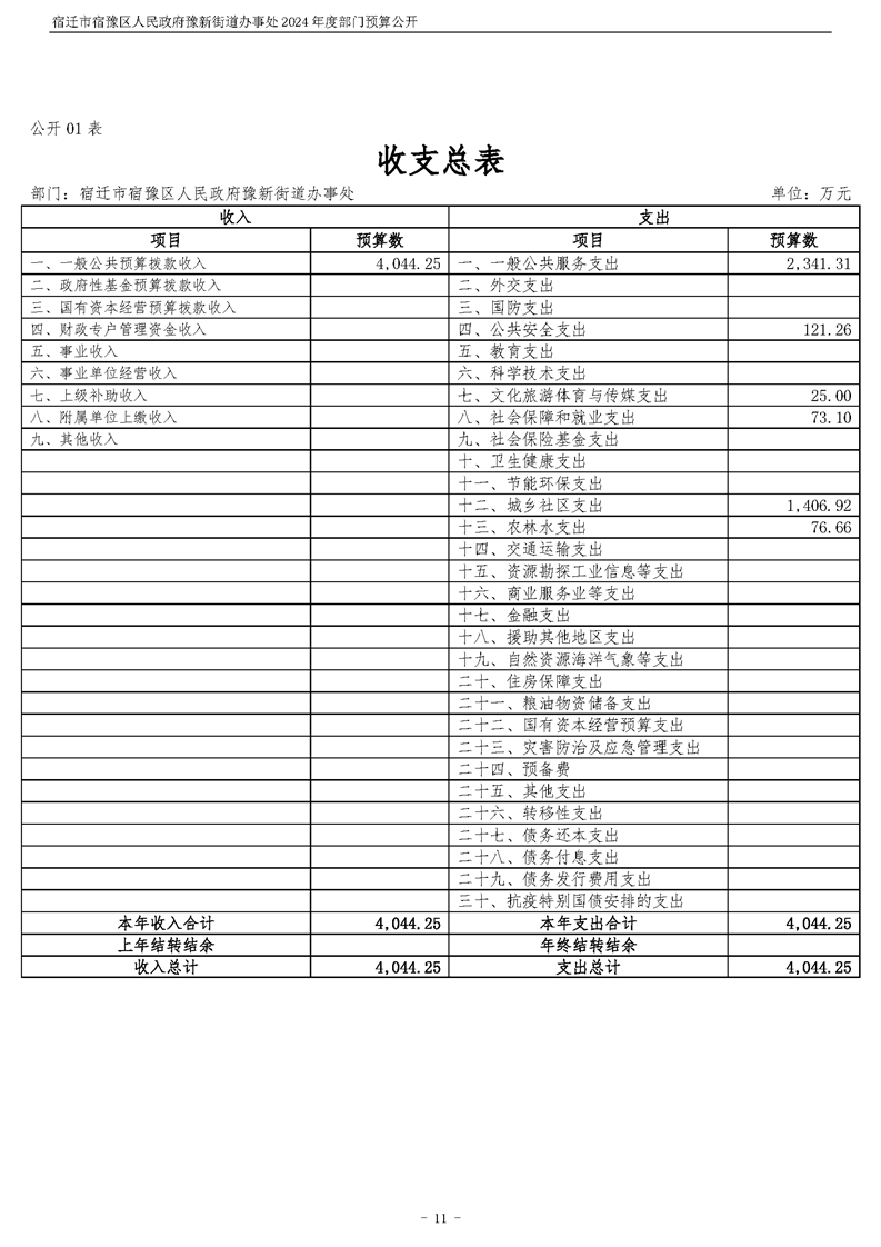 宿遷市宿豫區人民政府豫新街道辦事處2024年度部門預算公開