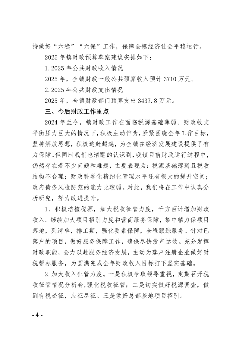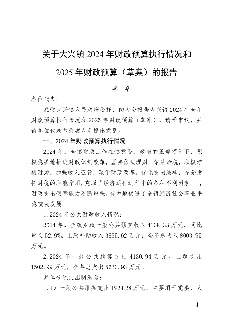 大興鎮2024年財政預算執行情況和2025年財政預算(草案)的報告
