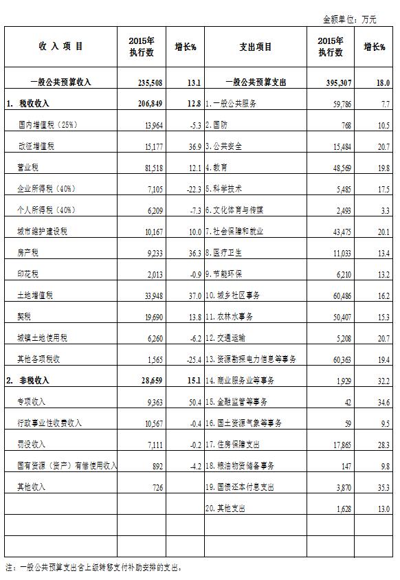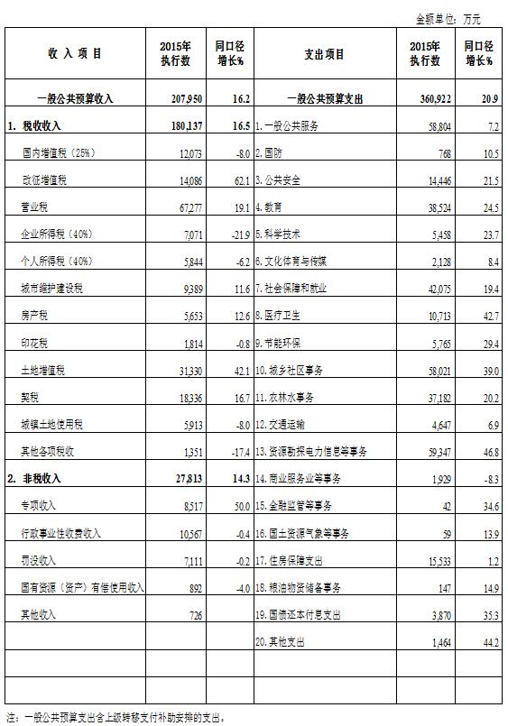一、2015年財政預算執行情況