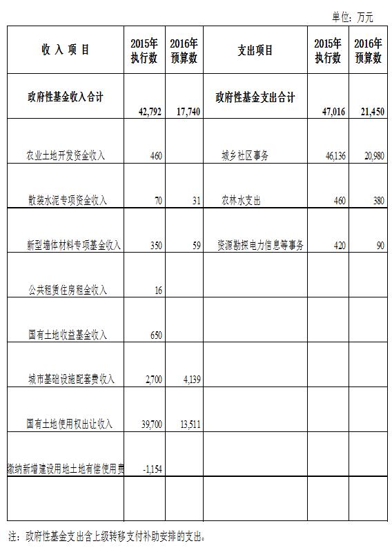 2016年全區政府性基金收支情況表