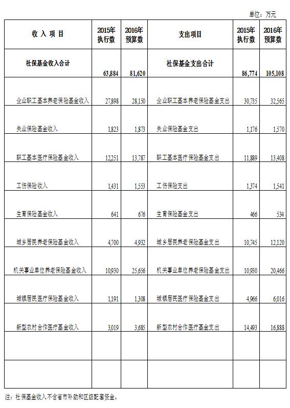 2016年全區社保基金收支情況表