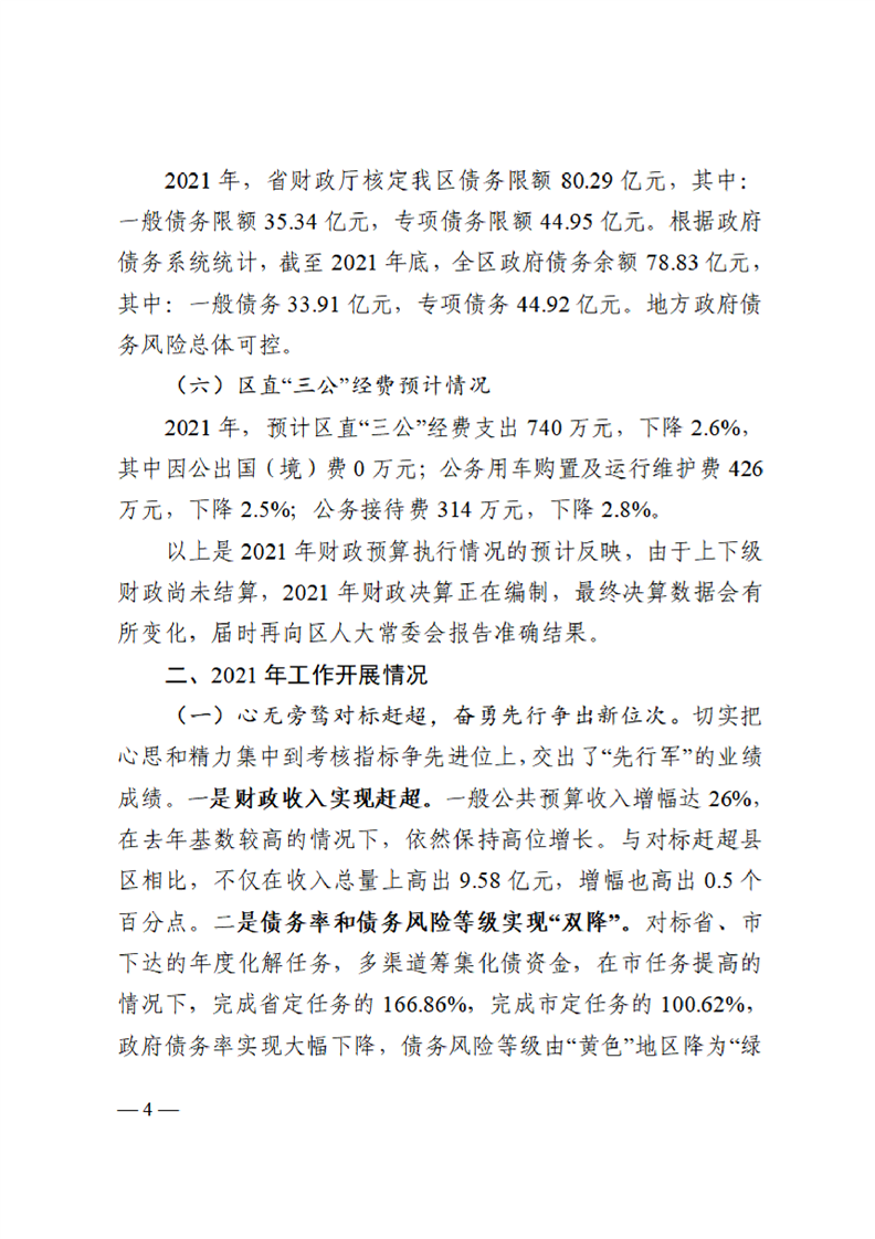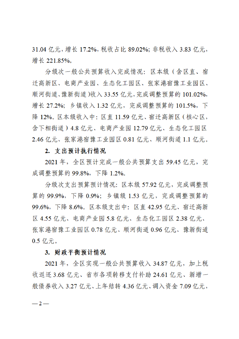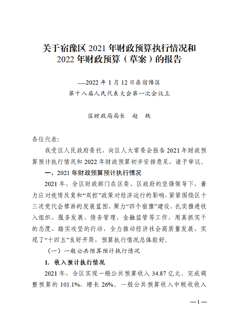 關于宿豫區2021年財政預算執行情況和 2022年財政預算(草案)的報告
