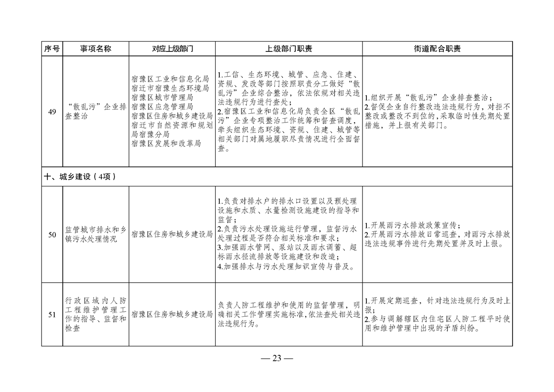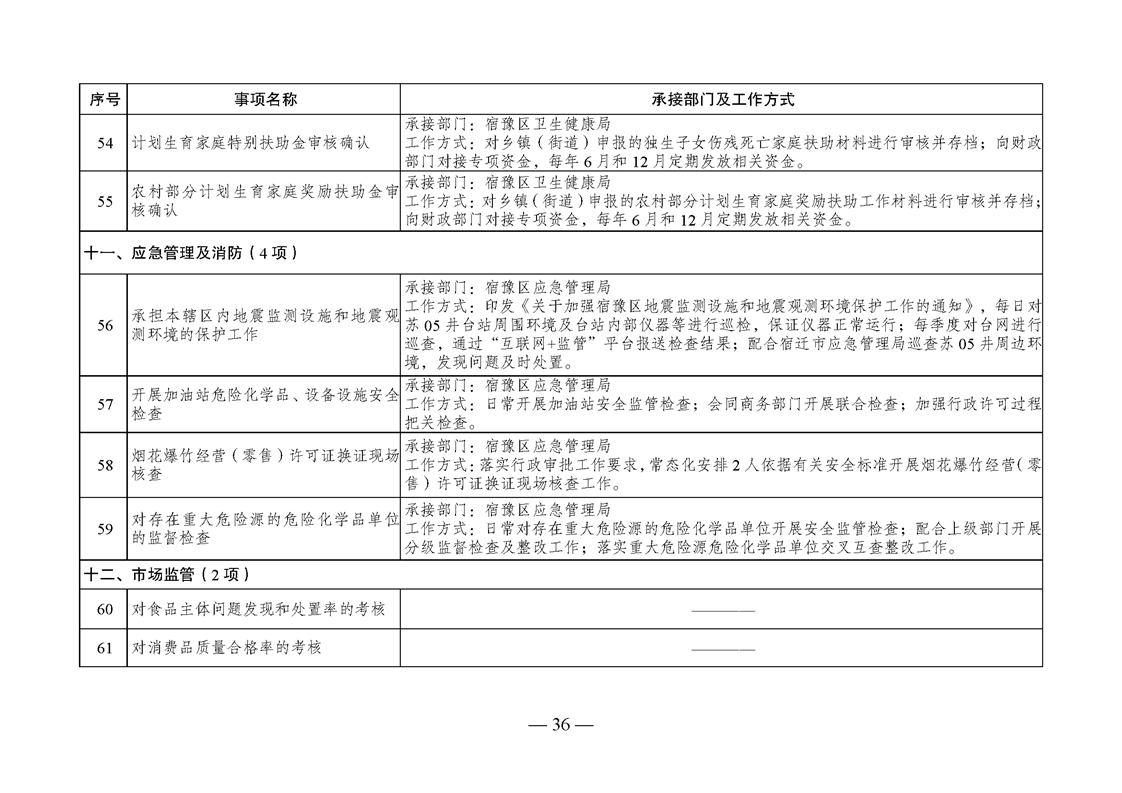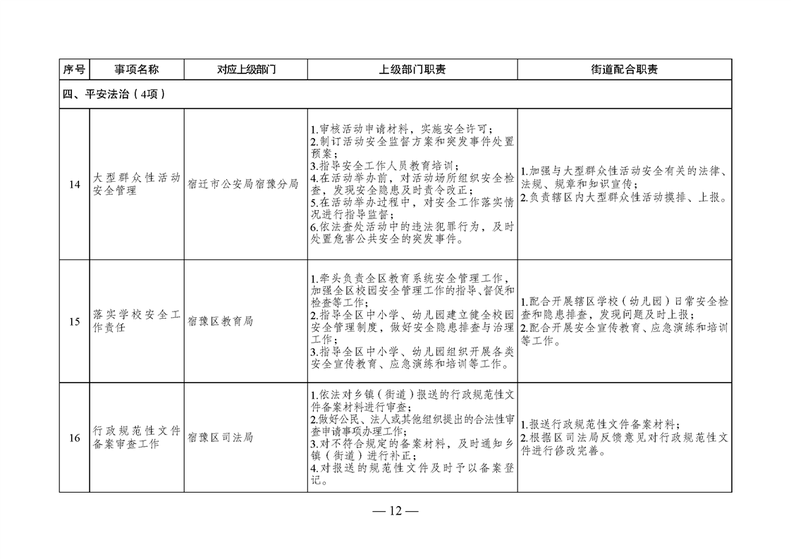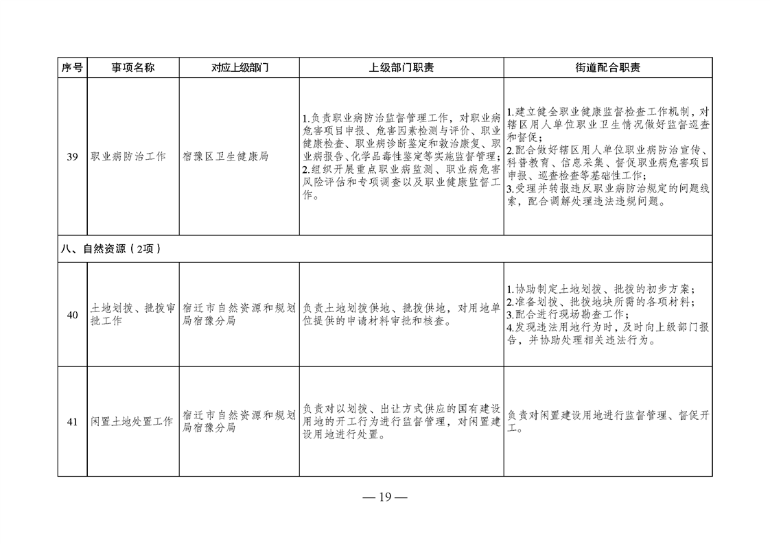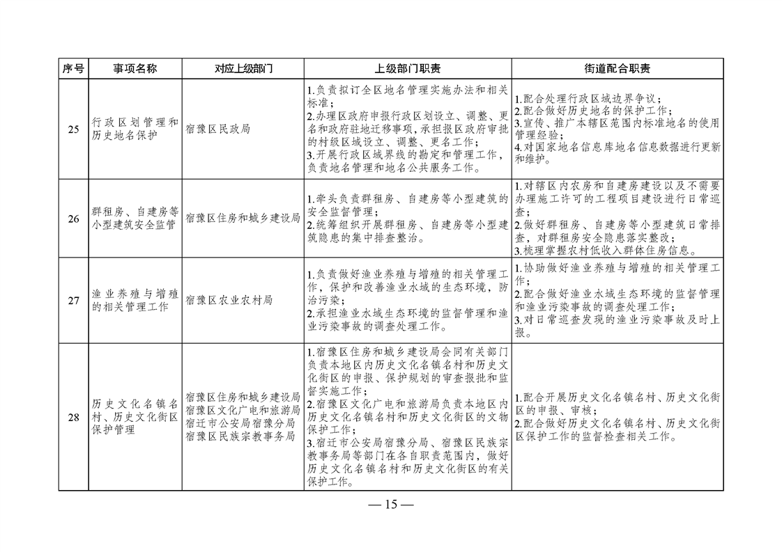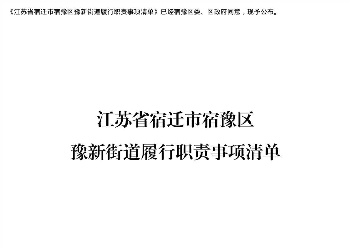 江蘇省宿遷市宿豫區豫新街道履行職責事項清單