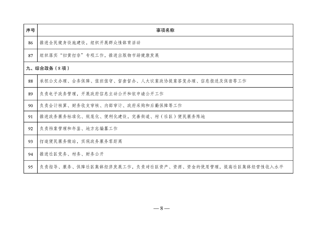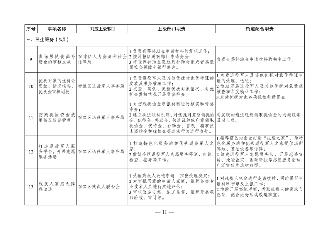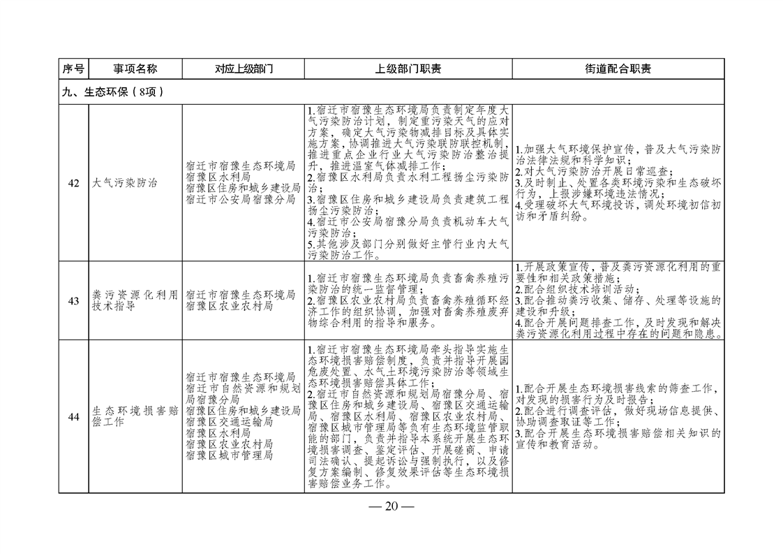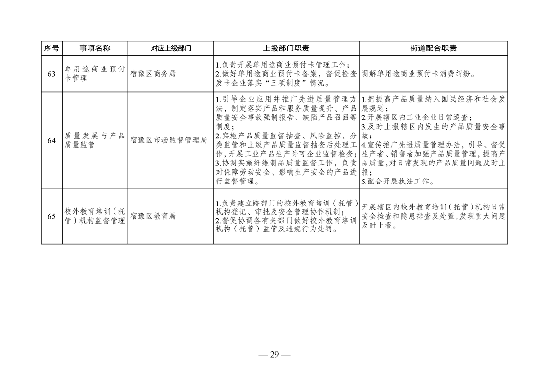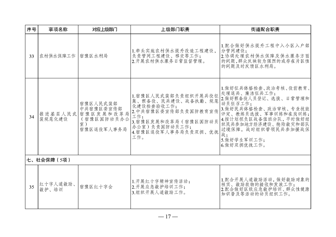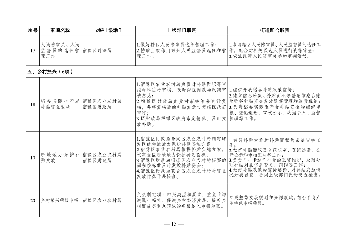 江蘇省宿遷市宿豫區豫新街道履行職責事項清單