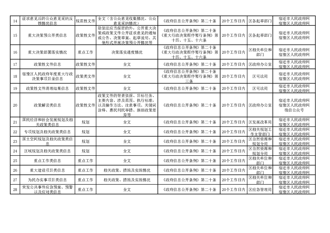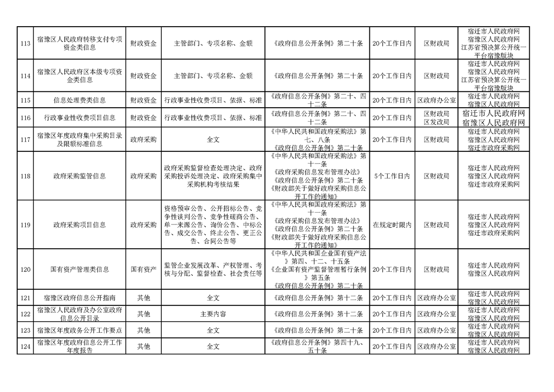 宿豫區(qū)人民政府及辦公室政府信息主動(dòng)公開目錄清單(2025年版)