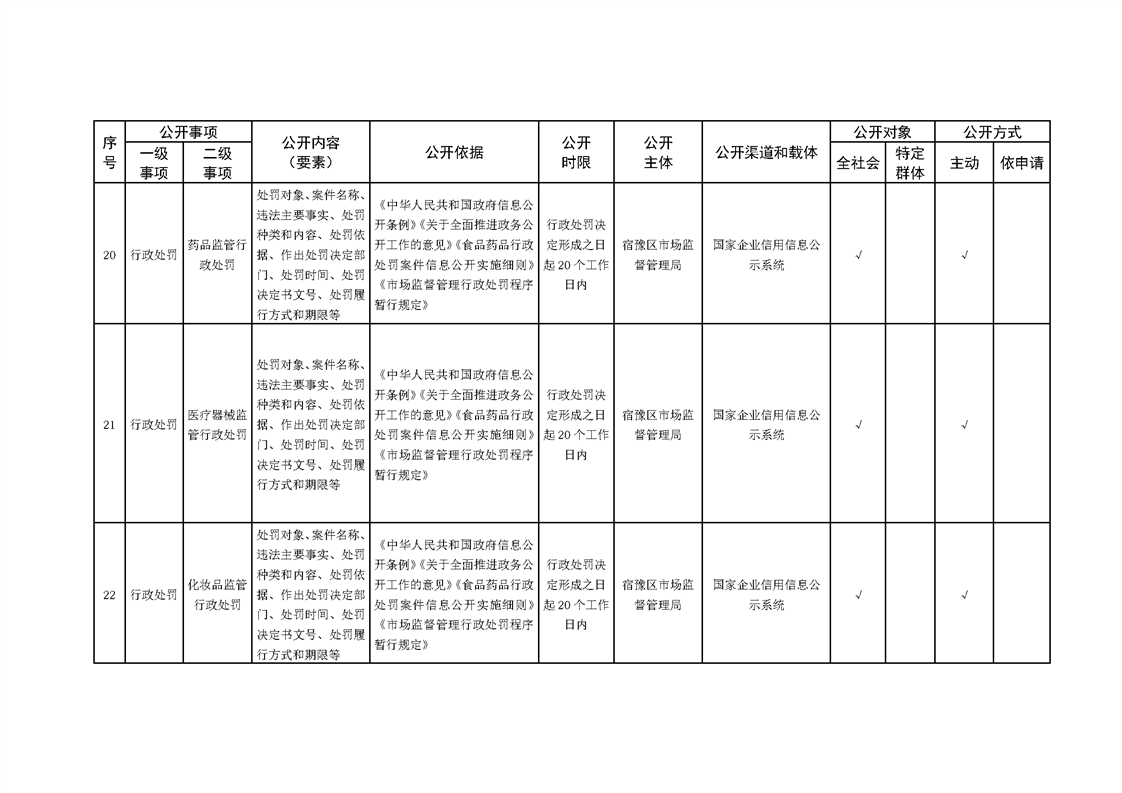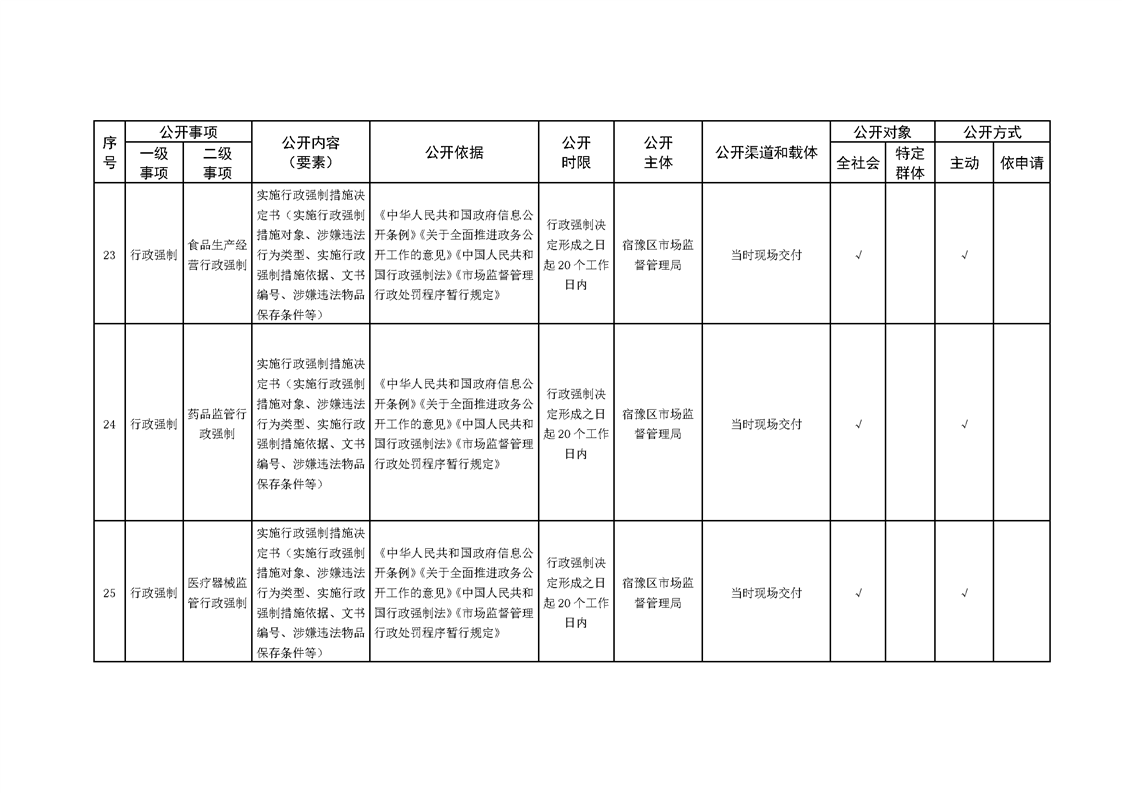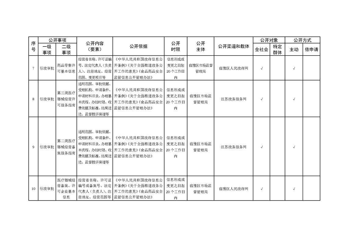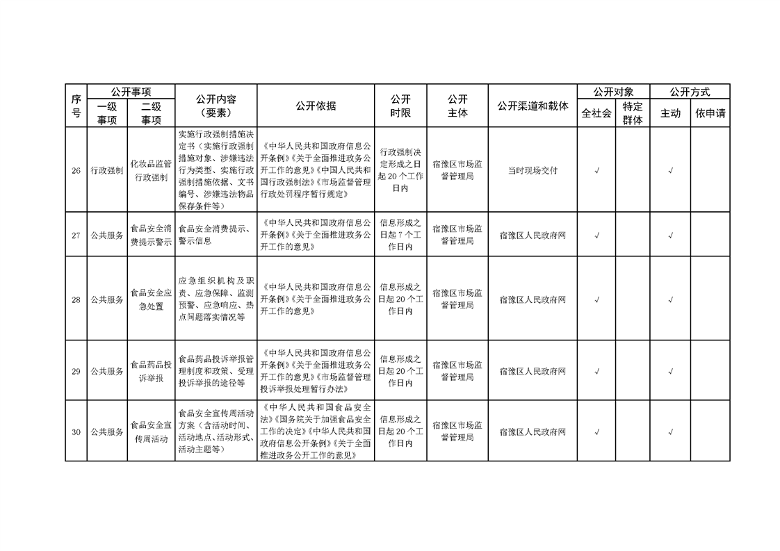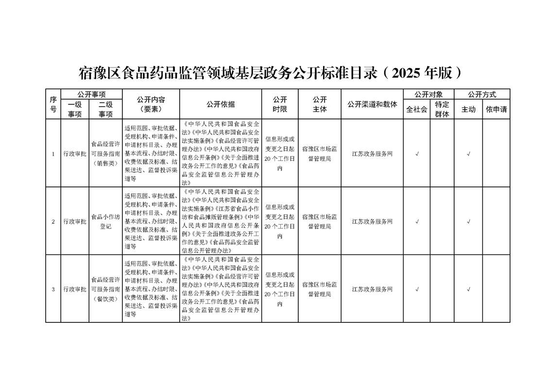 宿豫區(qū)食品藥品監(jiān)管領(lǐng)域基層政務(wù)公開標(biāo)準(zhǔn)目錄(2025年版)