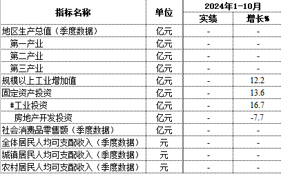 2024年1-10月份全區(qū)主要經(jīng)濟指標