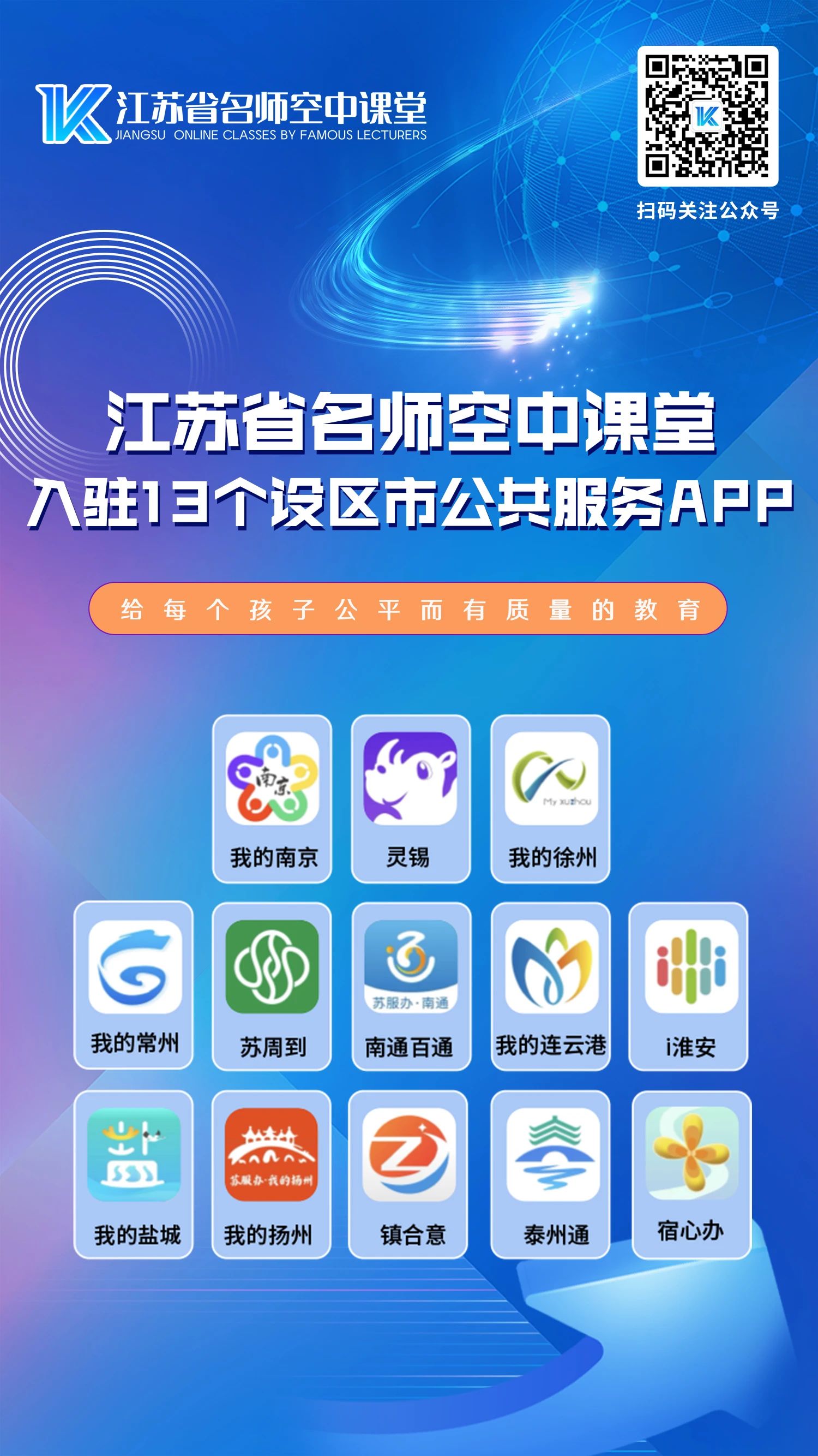 江蘇省名師空中課堂由江蘇省教育廳主辦,師資質(zhì)量有保障,老師教得盡心,孩子學(xué)得用心,家長盡請放心!這個暑假,上江蘇省名師空中課堂,和全省同學(xué)一起充電學(xué)習(xí),超越自我!7月7日,我們不見不散!
