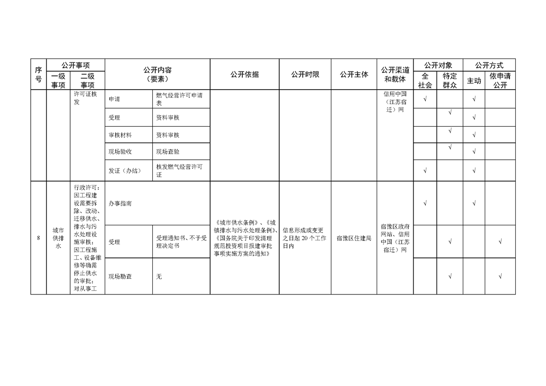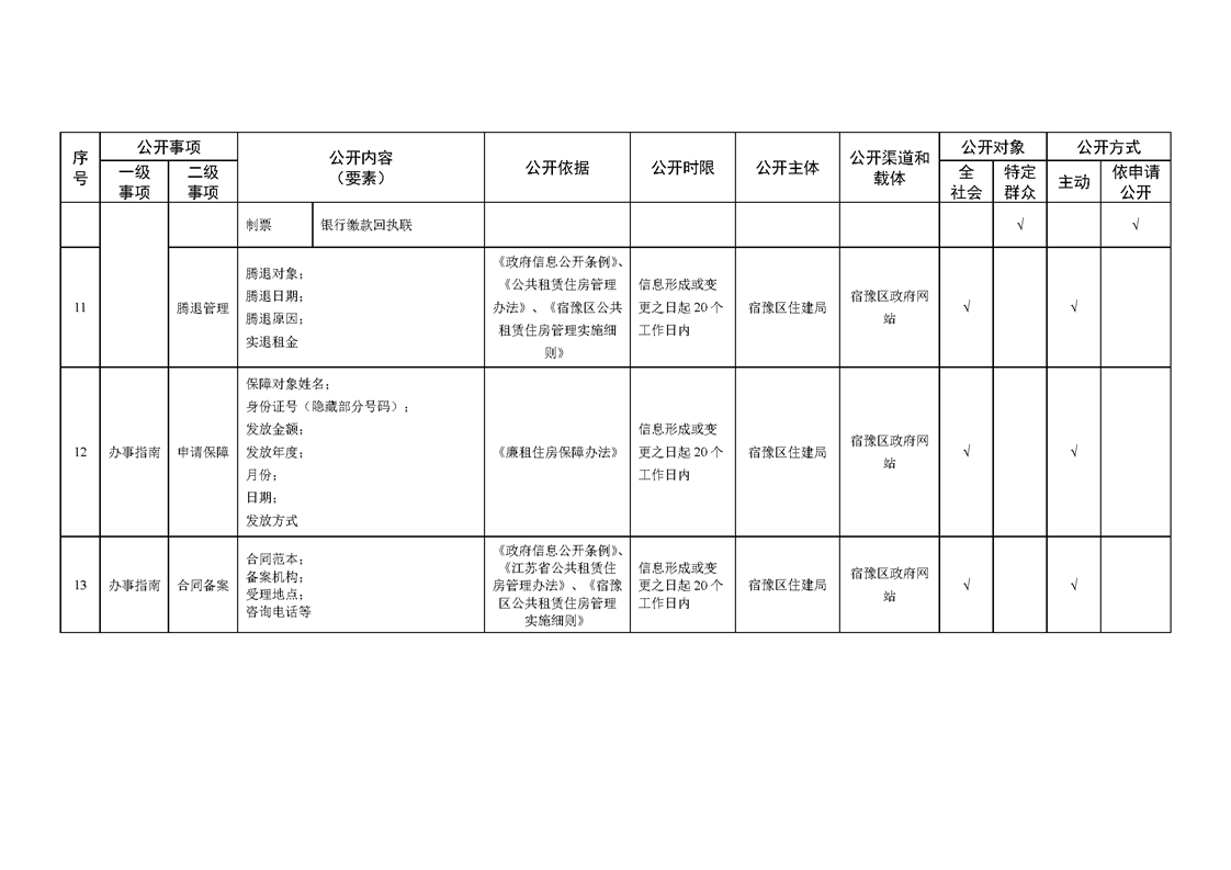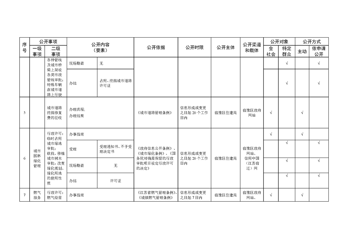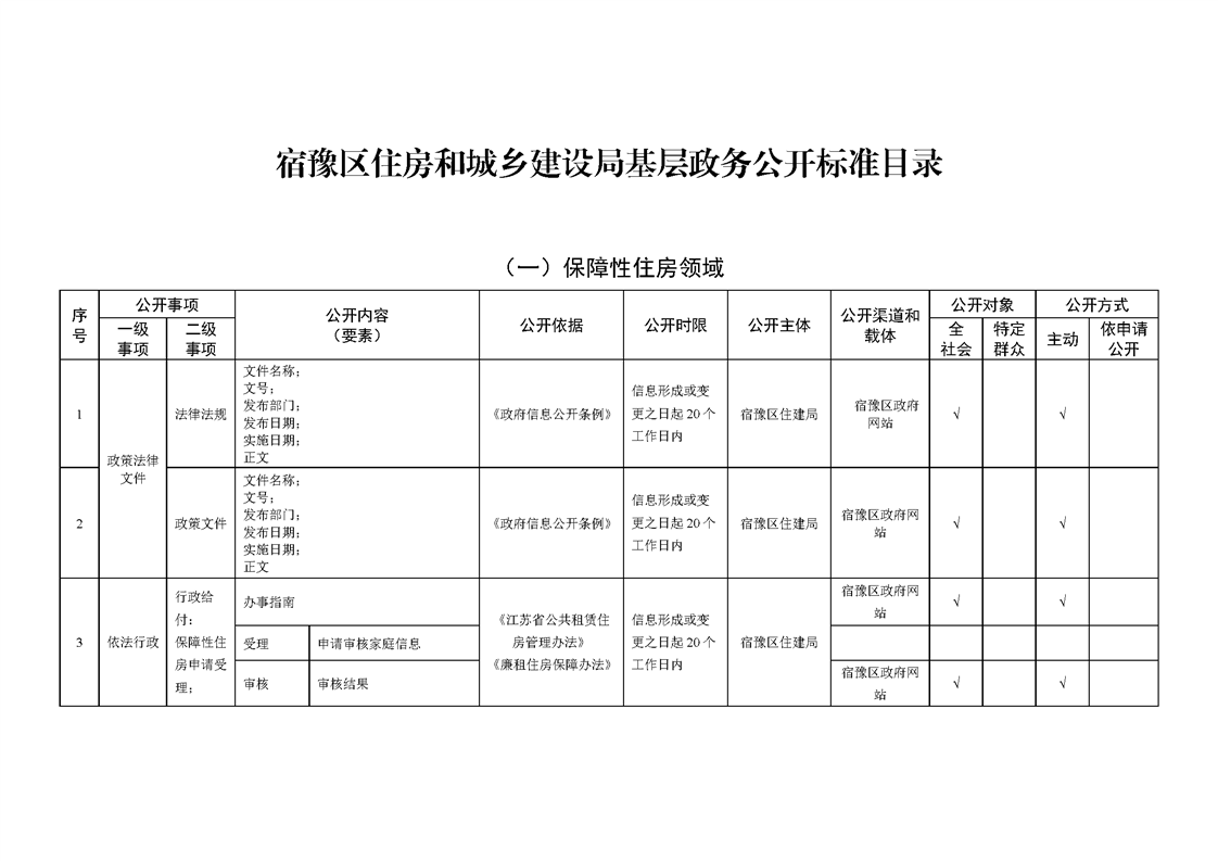 宿豫區住房和城鄉建設局基層政務公開標準目錄(2025年版)