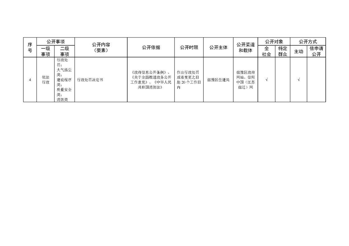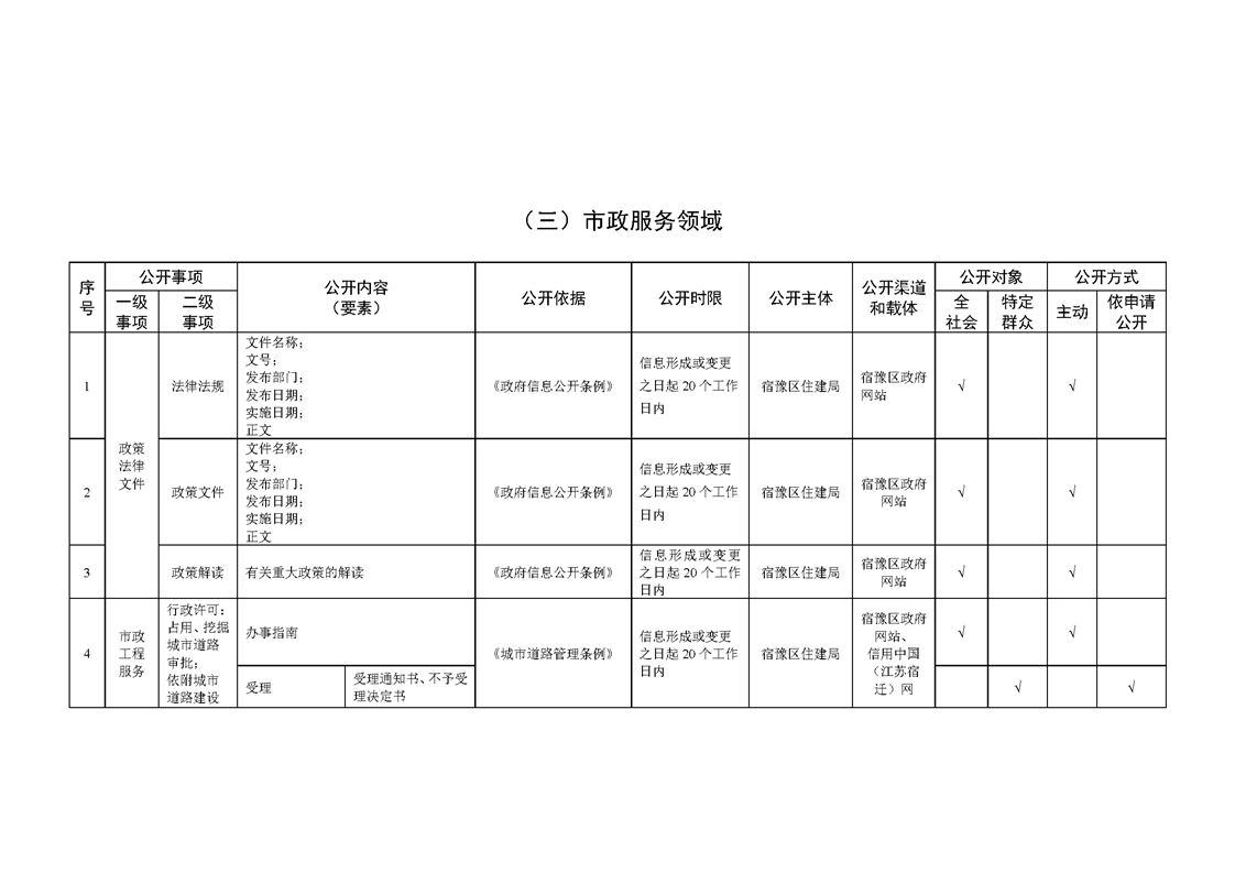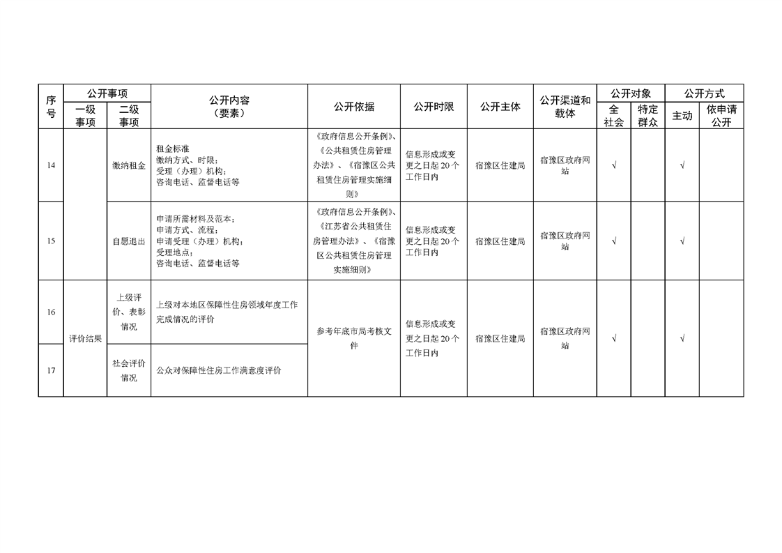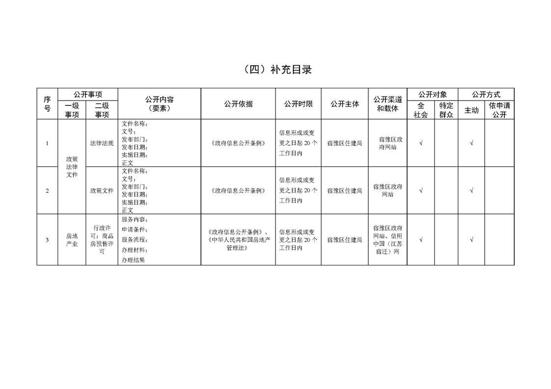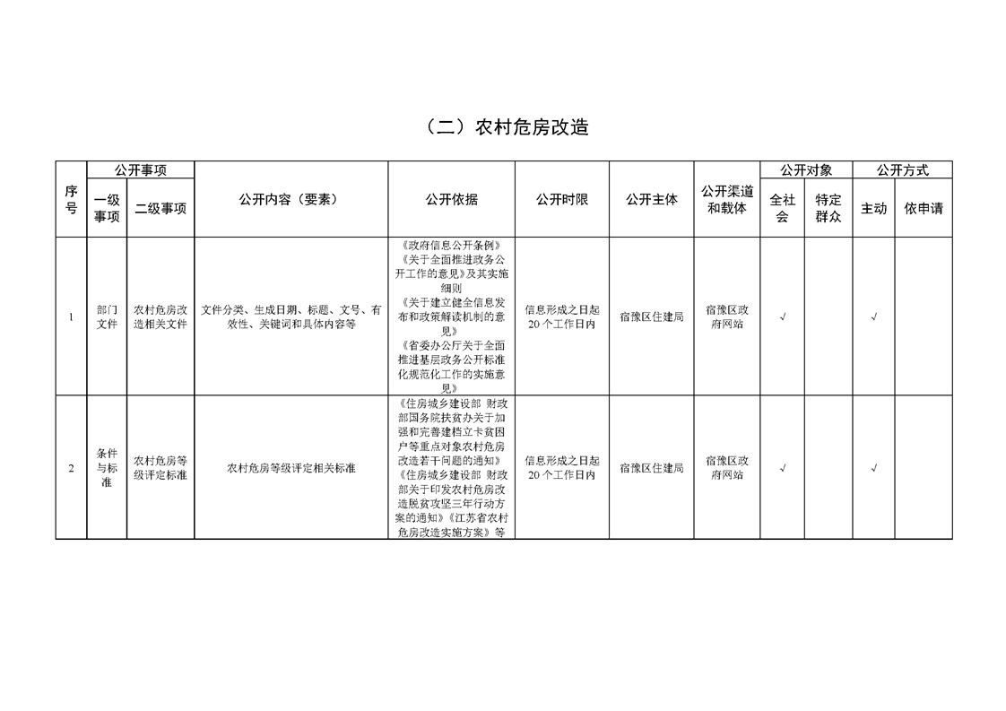 宿豫區住房和城鄉建設局基層政務公開標準目錄(2025年版)
