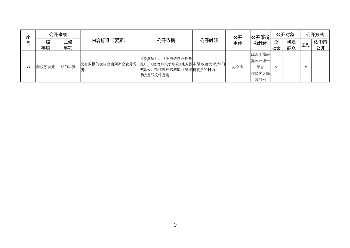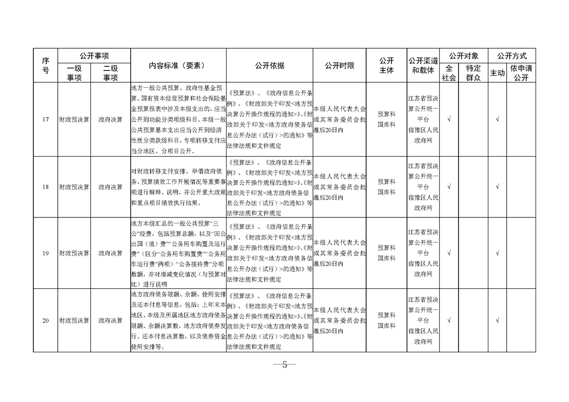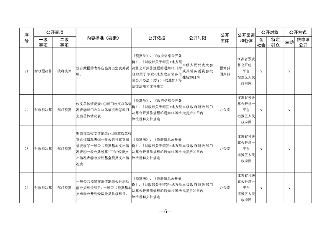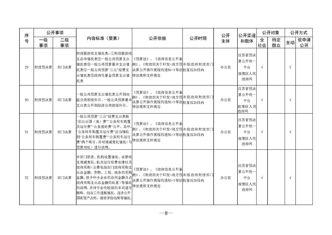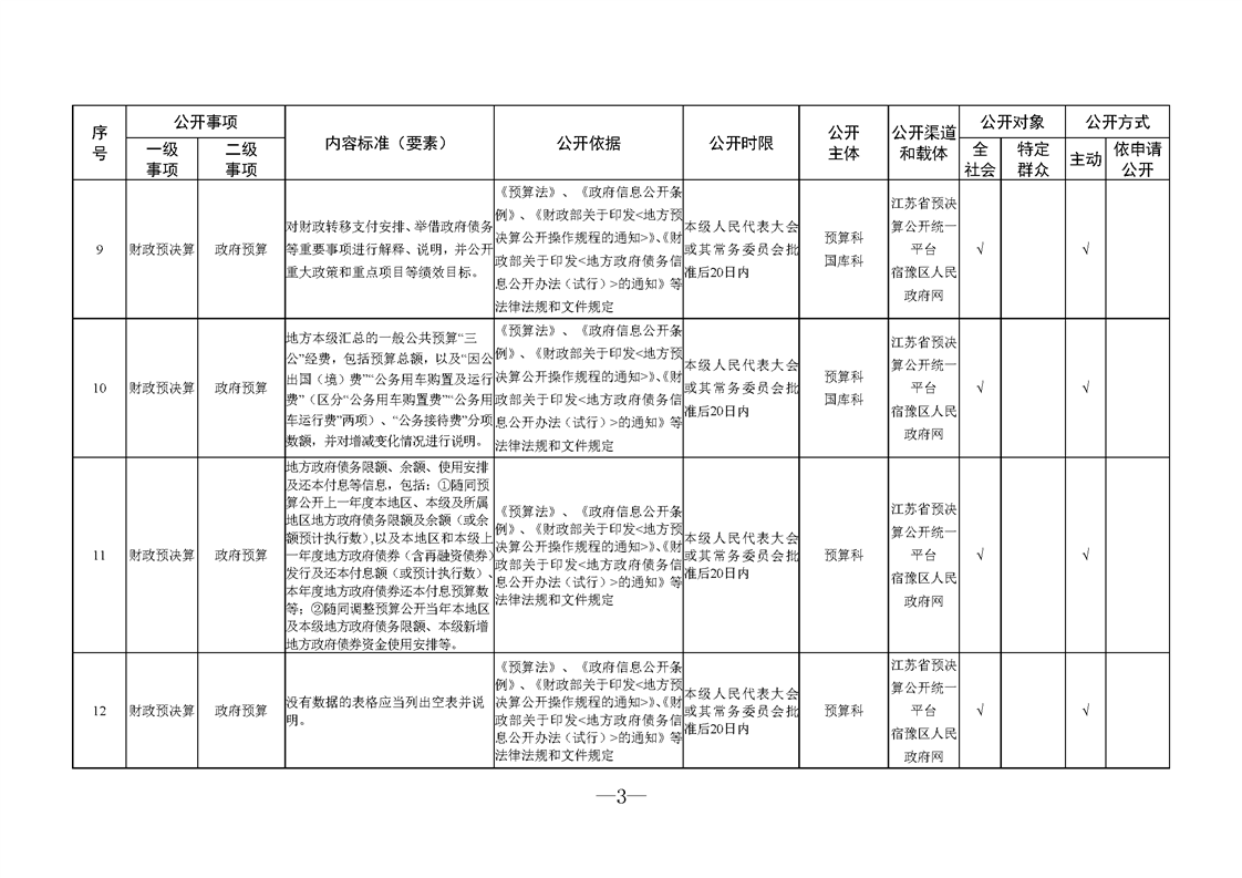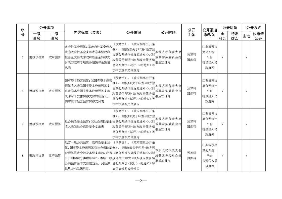 宿豫區(qū)財政局基層政務公開標準目錄(2025年版)