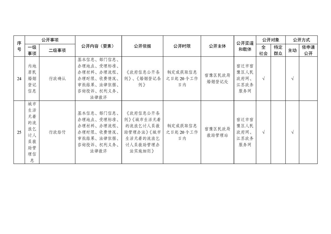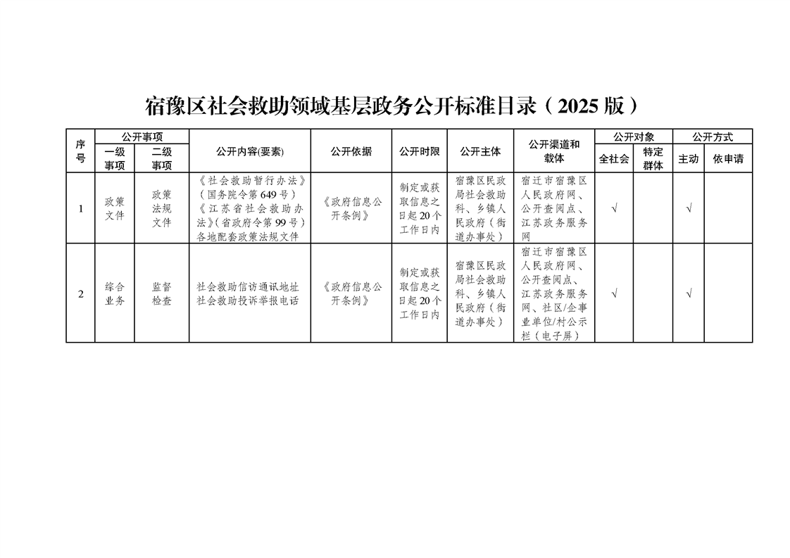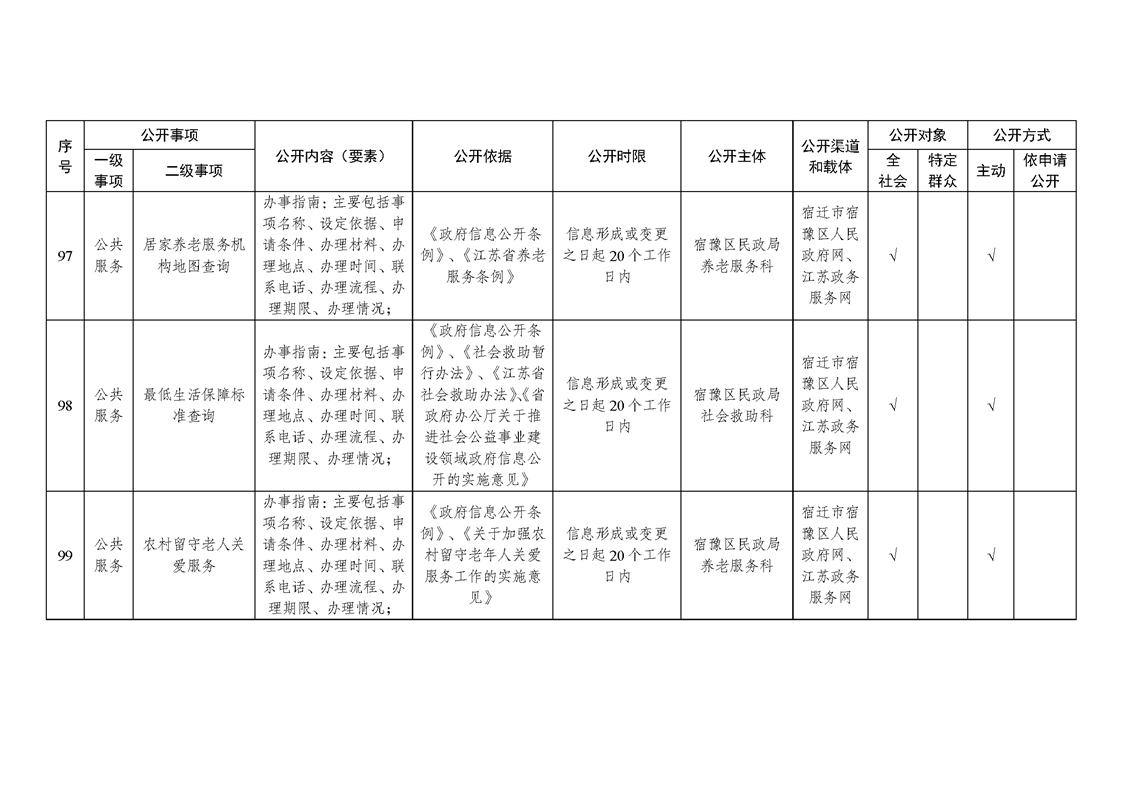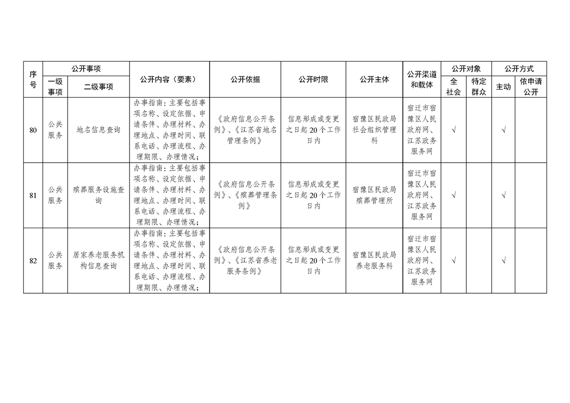 宿豫區民政局基層政務公開標準目錄(2025年版)