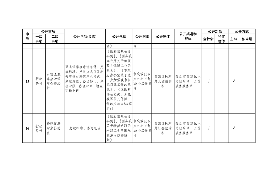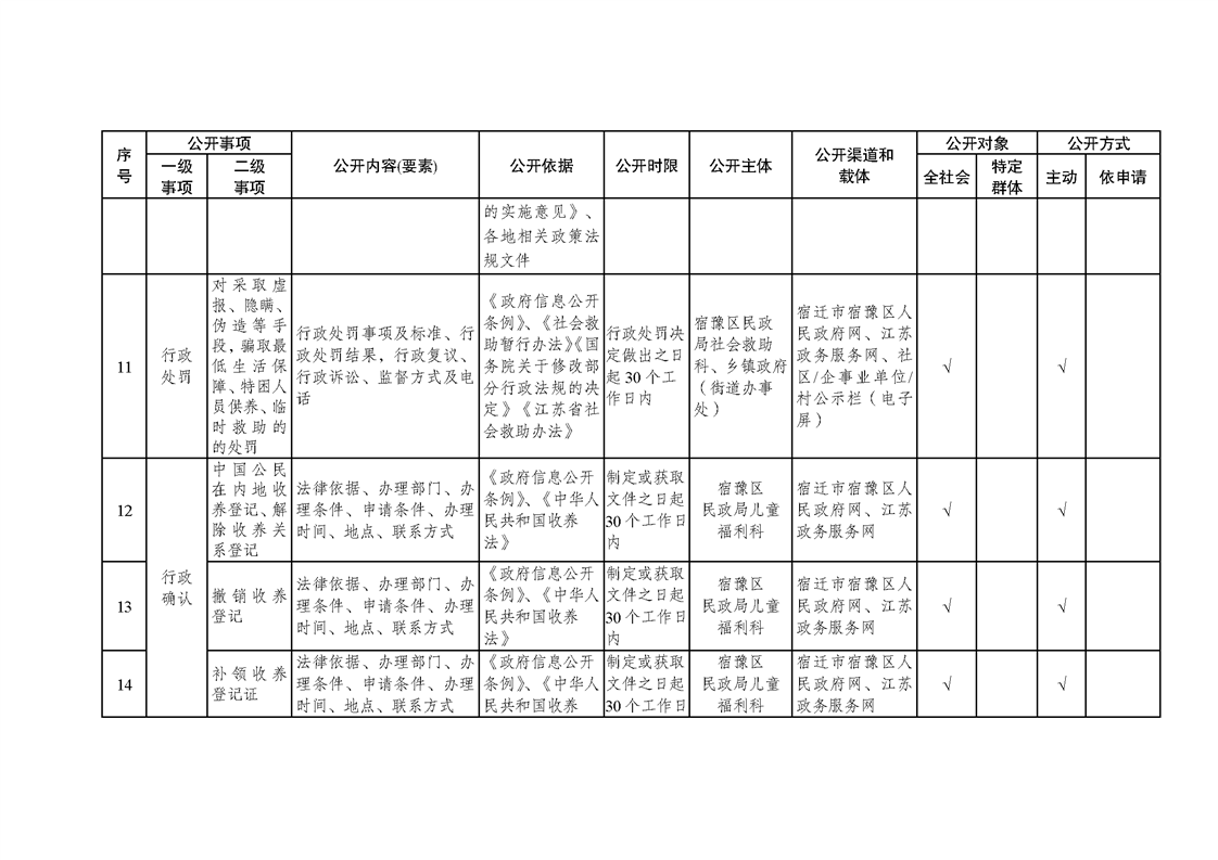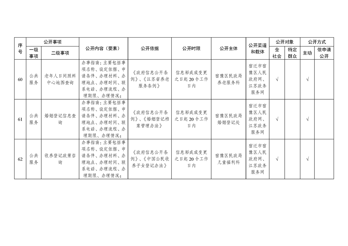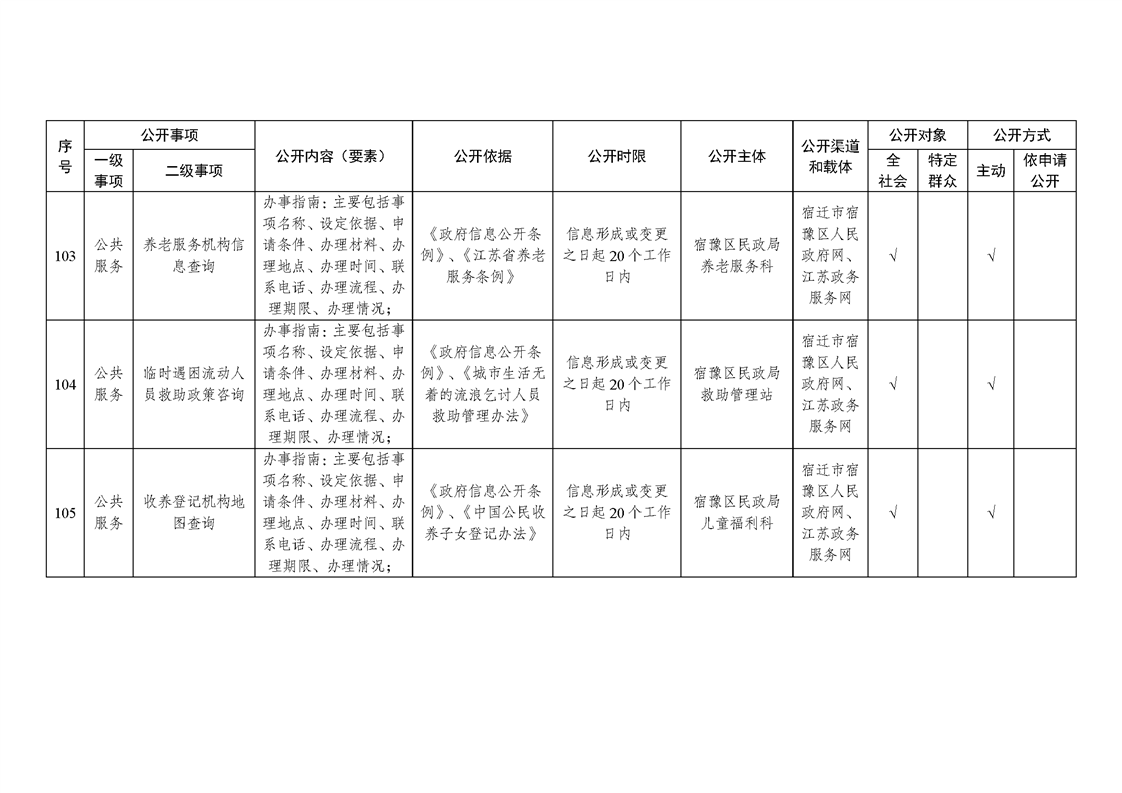 宿豫區民政局基層政務公開標準目錄(2025年版)
