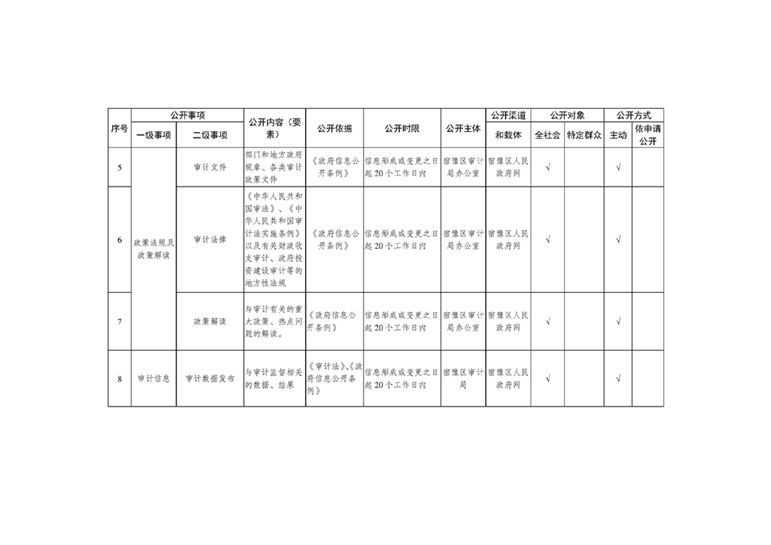 宿豫區(qū)審計局基層政務(wù)公開標(biāo)準(zhǔn)目錄(2025年版)