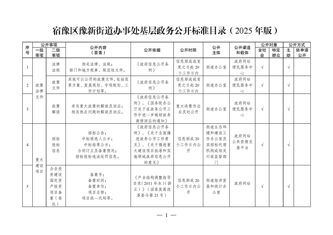 宿豫區豫新街道辦事處基層政務公開標準目錄(2025年版)