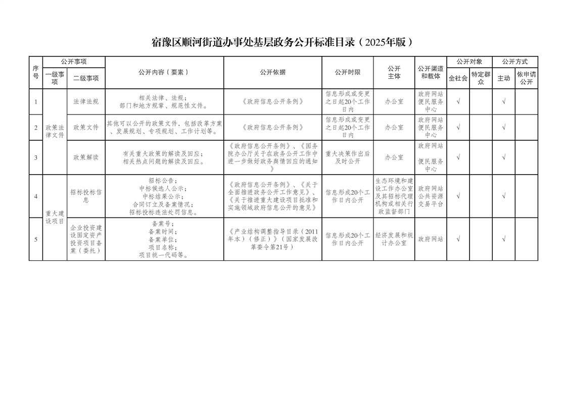 宿豫區順河街道辦事處基層政務公開標準目錄(2025年版)