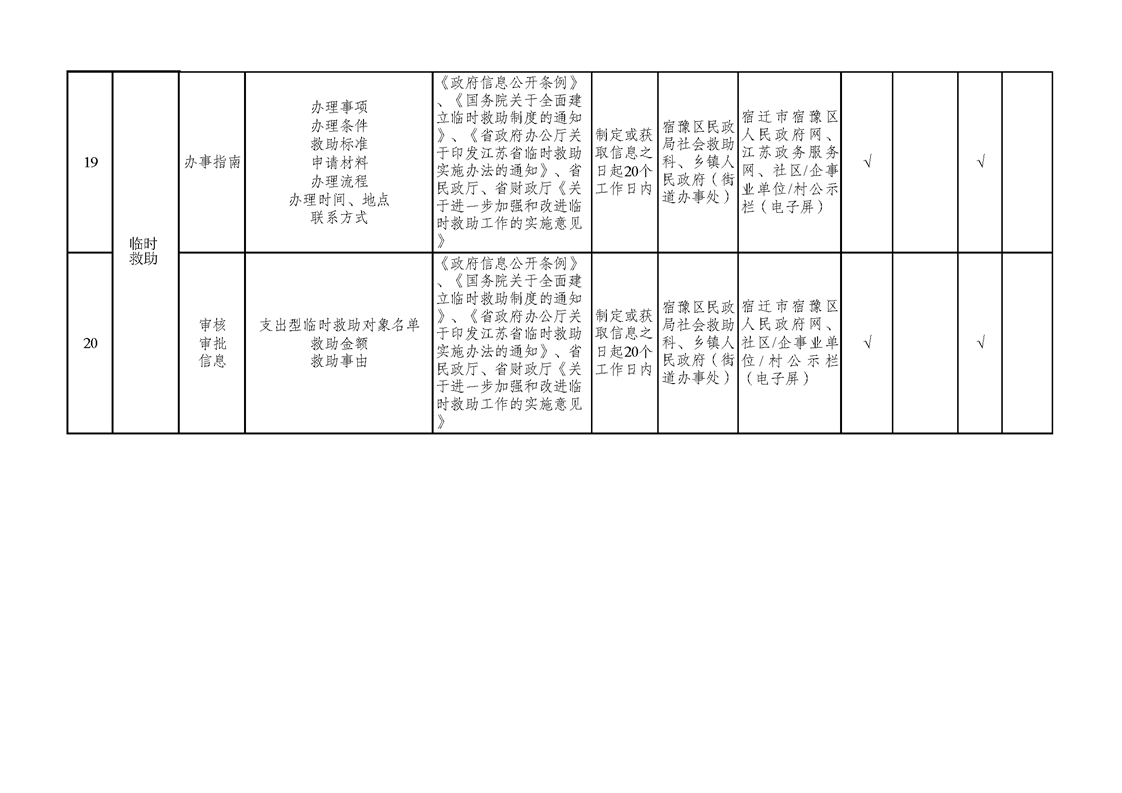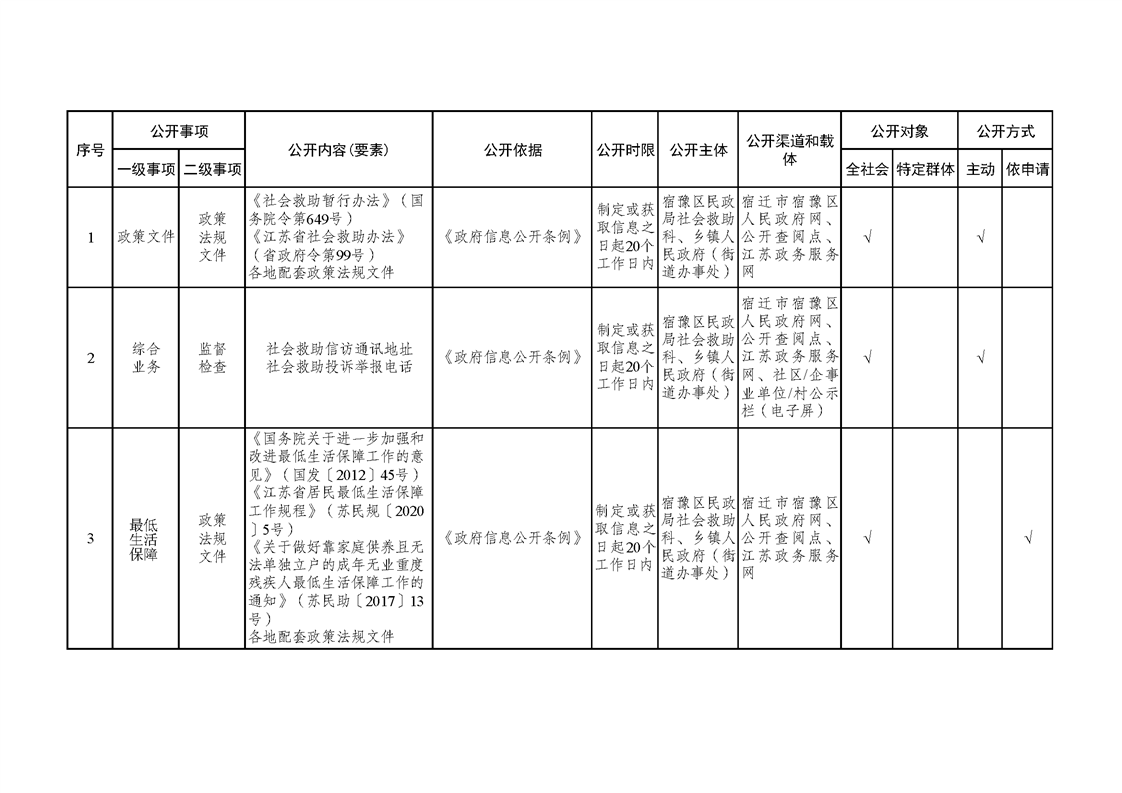 宿豫區社會救助領域基層政務公開標準目錄2025年版