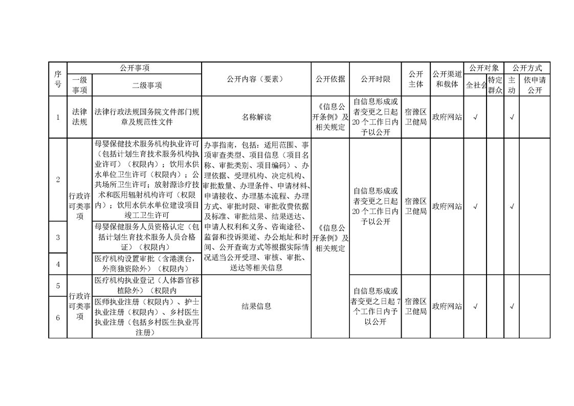 宿豫區衛生健康領域基層政務公開標準目錄(2025年版)