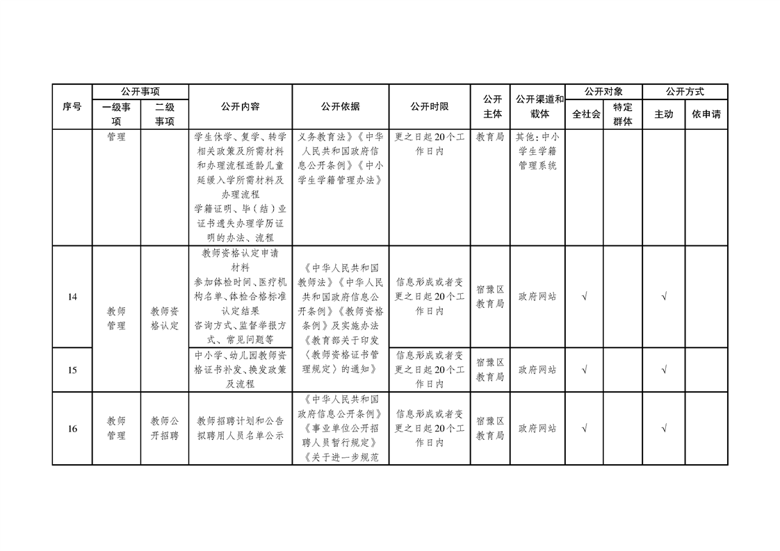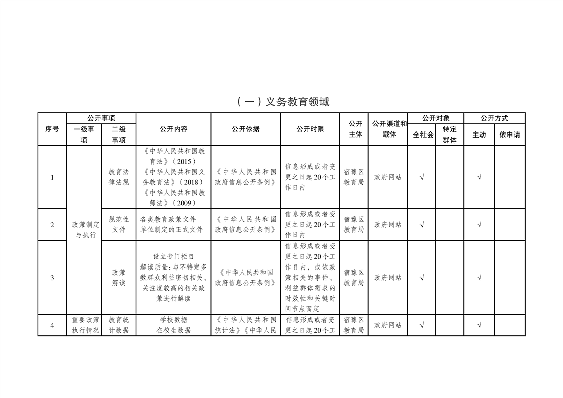 宿豫區義務教育領域基層政務公開標準目錄(2025年版)