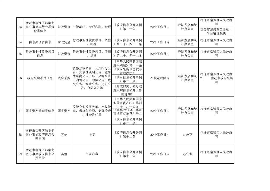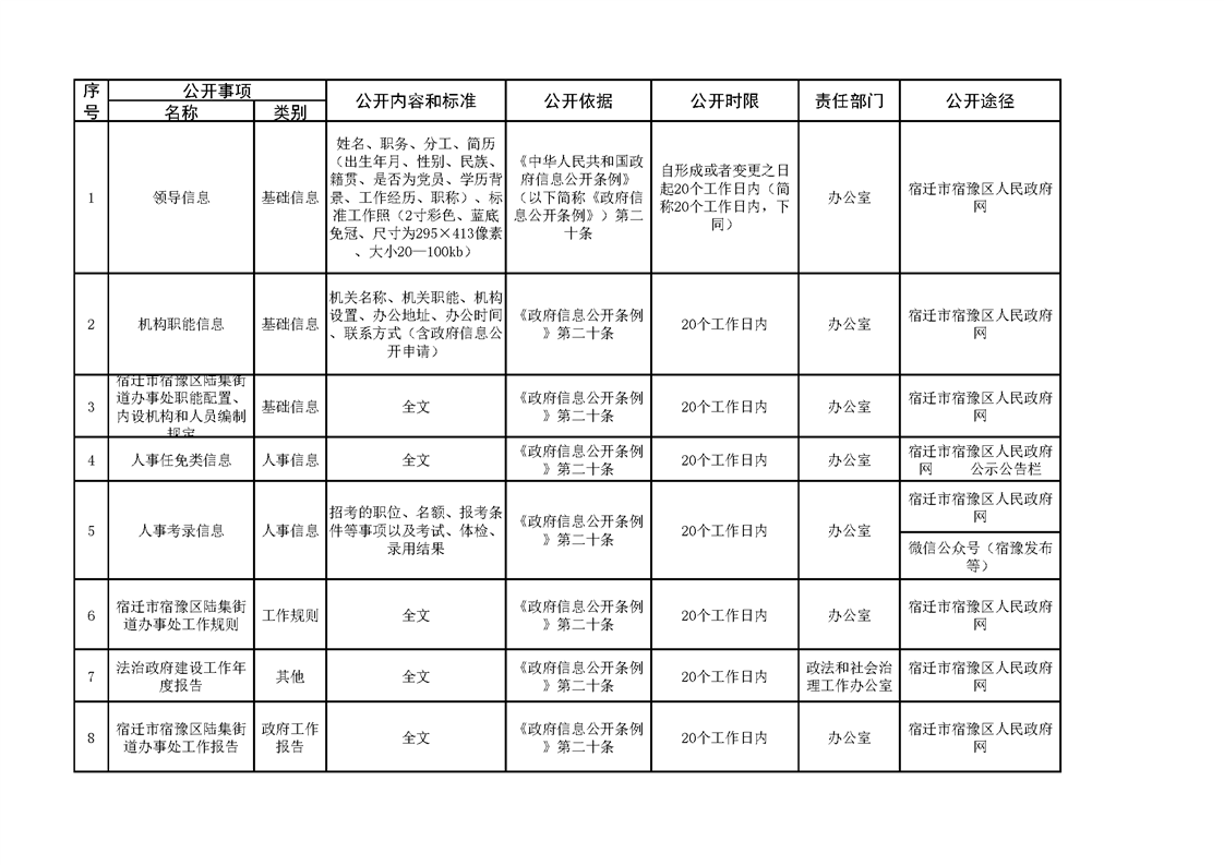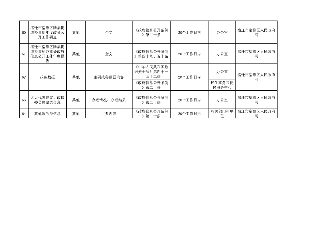 宿豫區陸集街道辦事處政府信息主動公開標準目錄(2025年版)