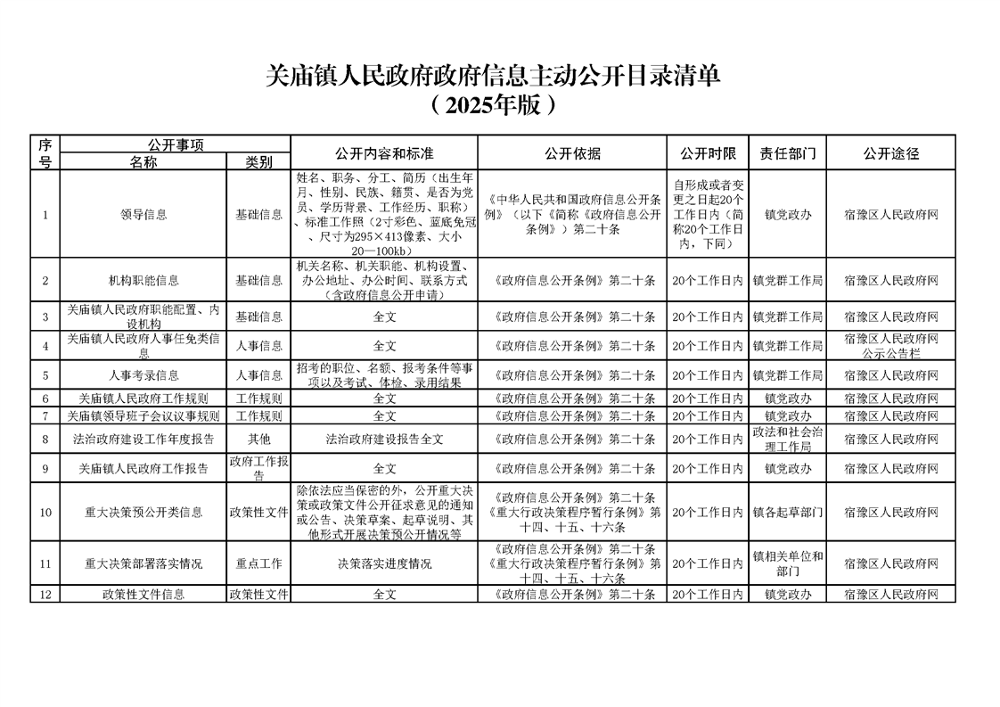 宿遷市宿豫區(qū)關(guān)廟鎮(zhèn)人民政府政府信息主動(dòng)公開目錄清單(2025年版)