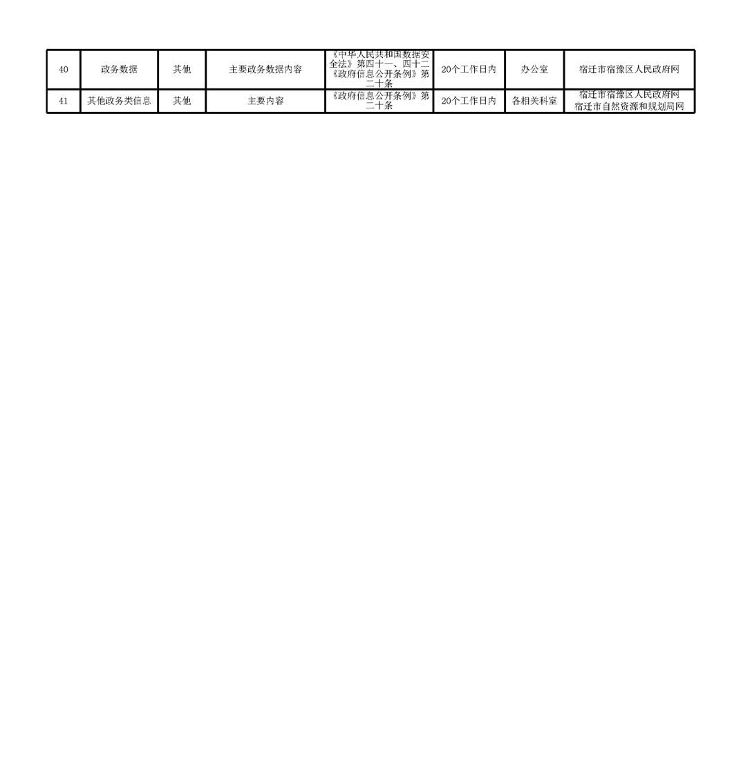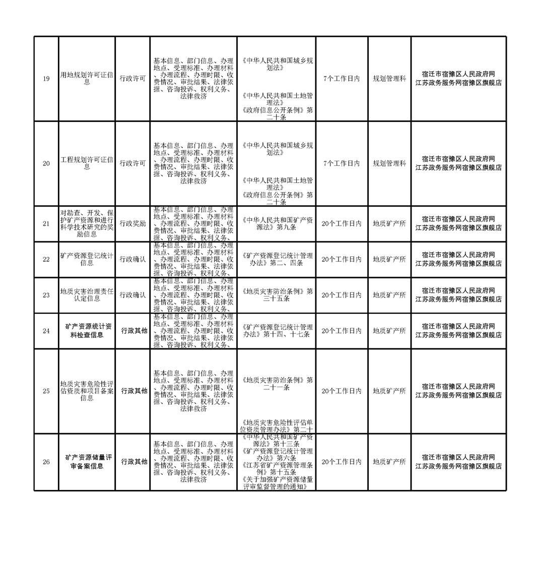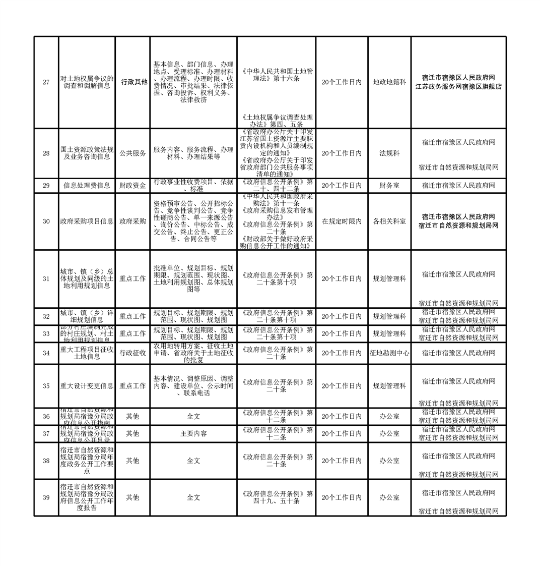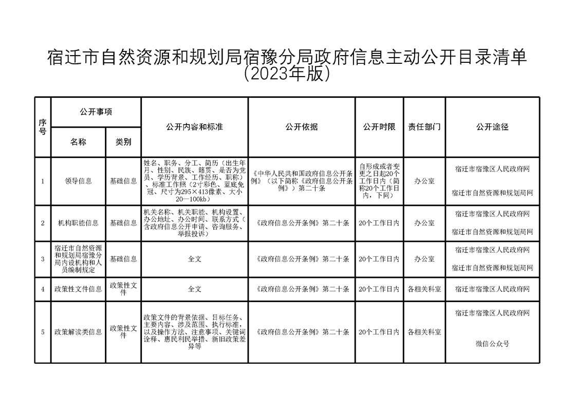 宿遷市自然資源和規劃局宿豫分局政府信息主動公開目錄清單(2025年版)