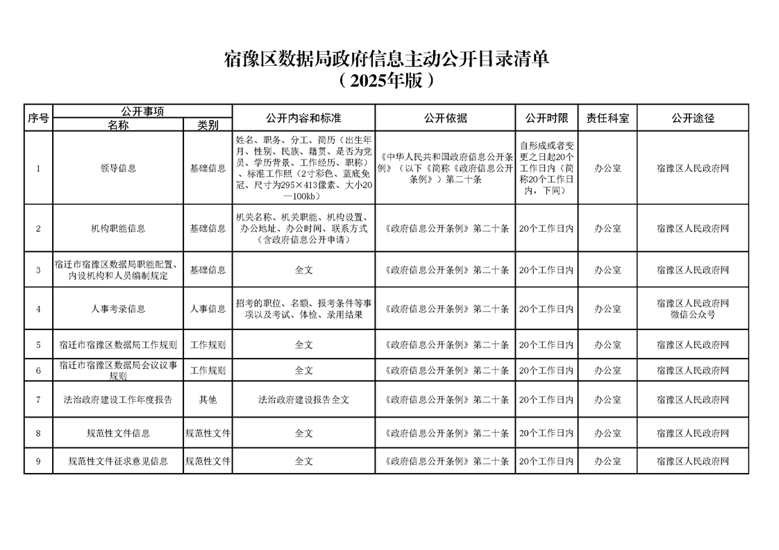 宿豫區(qū)數據局政府信息主動公開目錄清單(2025年版)