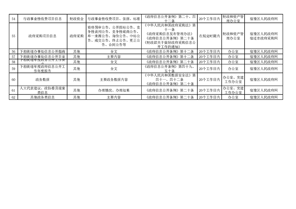 宿豫區(qū)下相街道辦事處政府信息主動(dòng)公開目錄清單(2025年版)