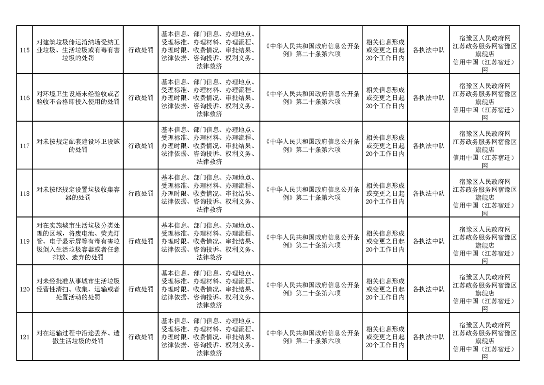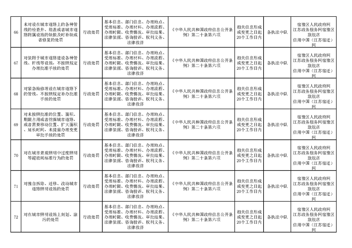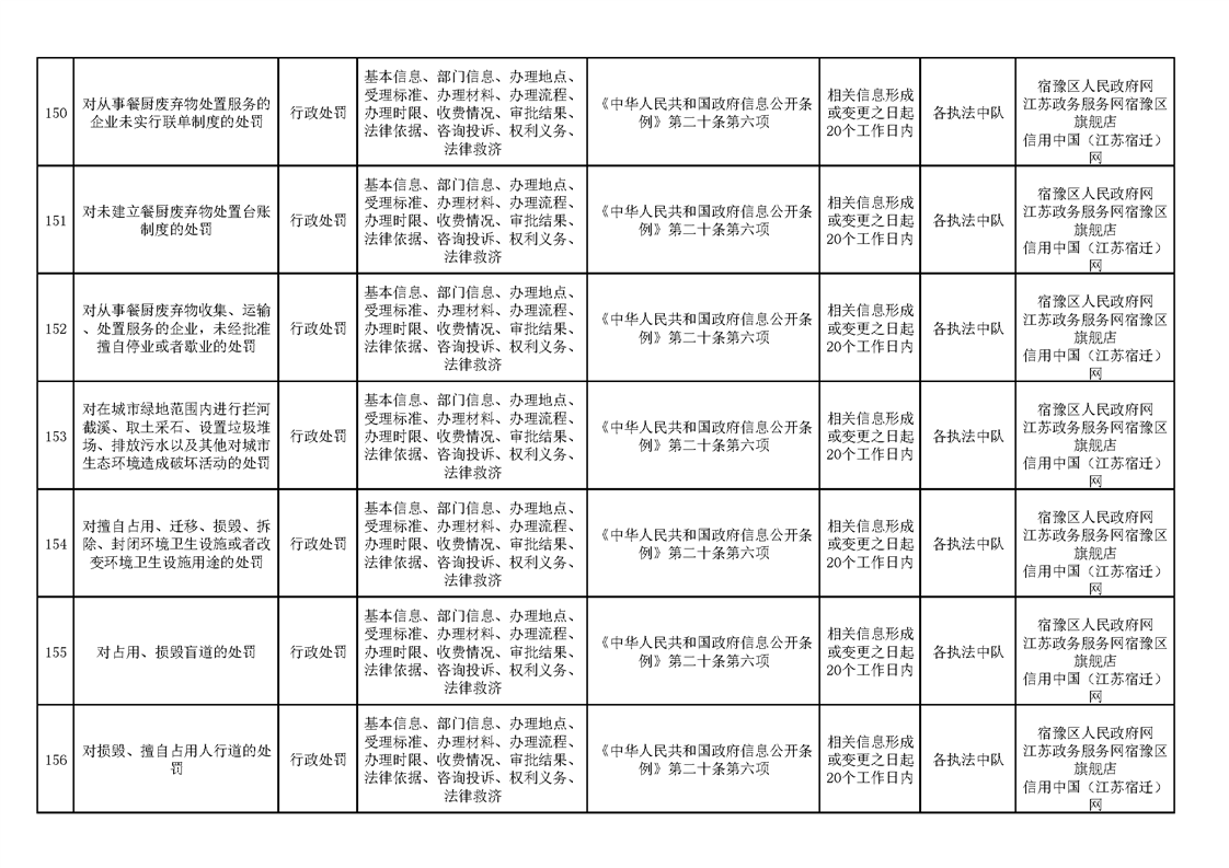 宿豫區城市管理局政府信息主動公開目錄清單(2025年版)
