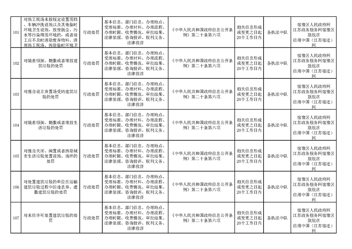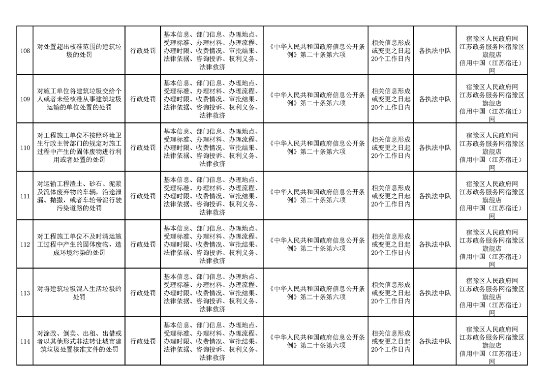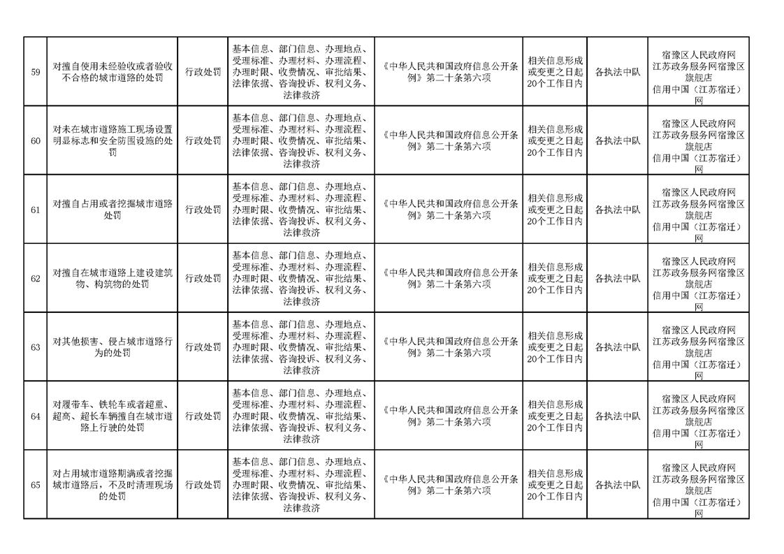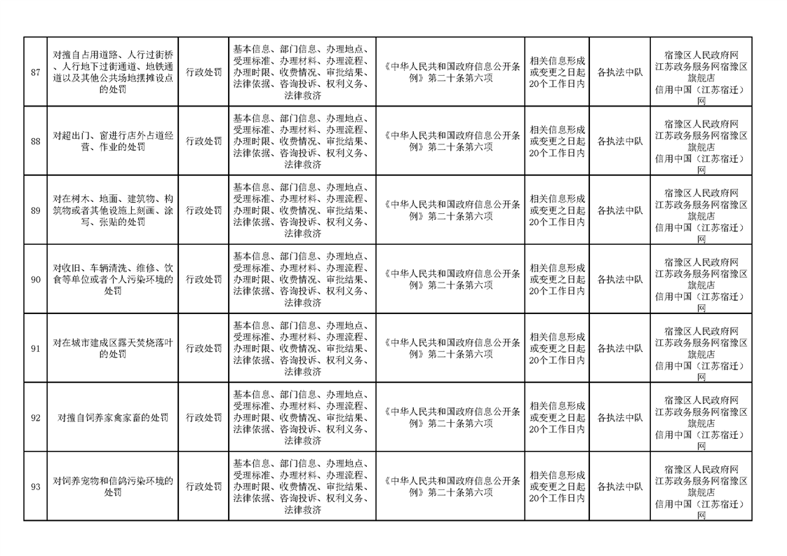 宿豫區城市管理局政府信息主動公開目錄清單(2025年版)