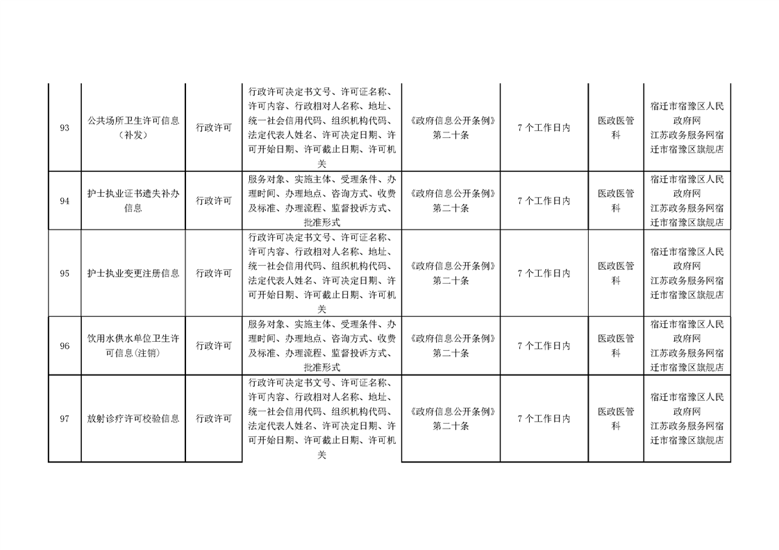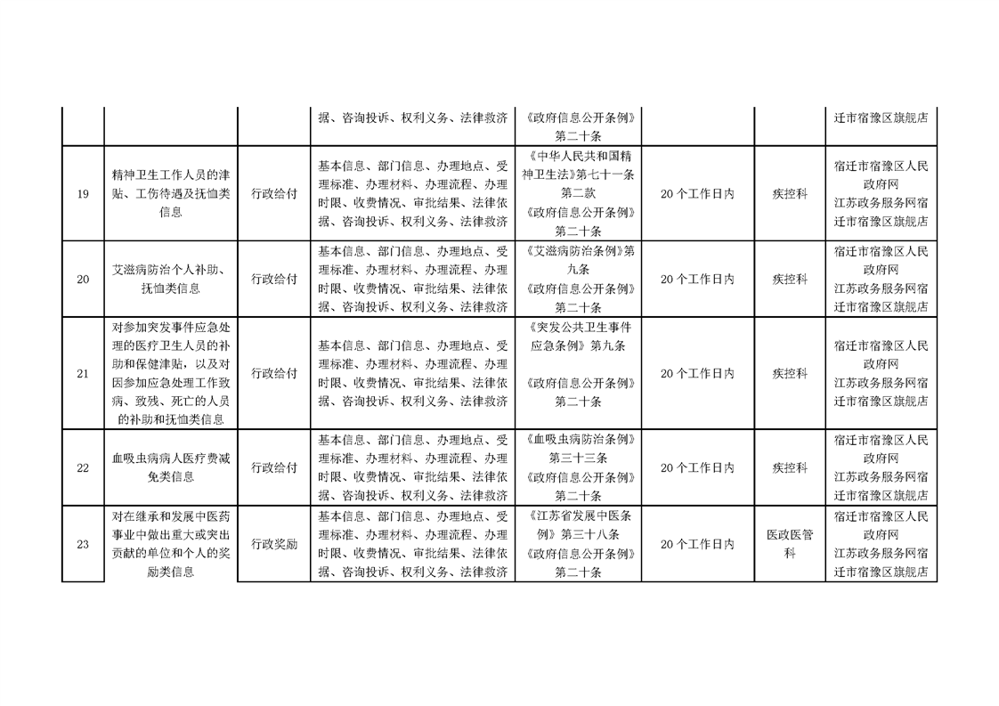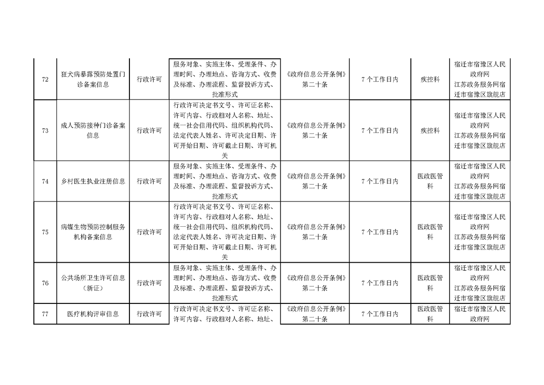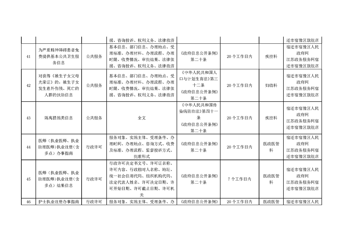 宿豫區(qū)衛(wèi)生健康局政府信息主動公開目錄清單(2025年版)