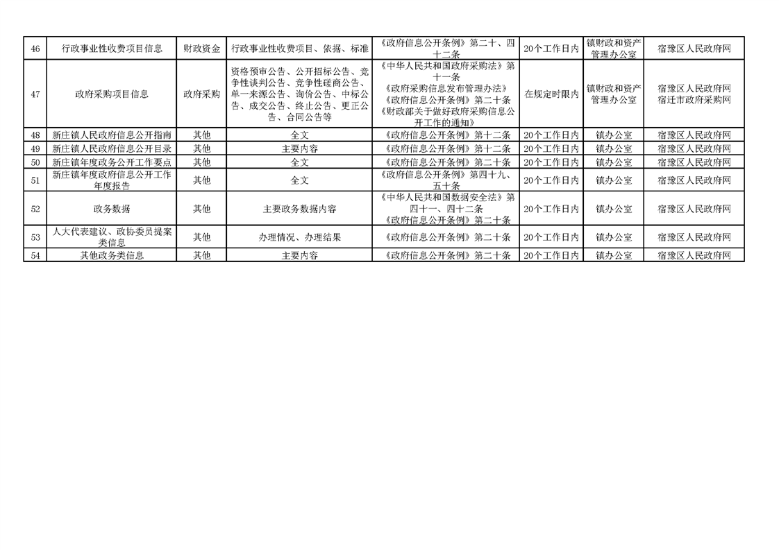 宿豫區新莊鎮人民政府信息主動公開目錄清單(2025年版)