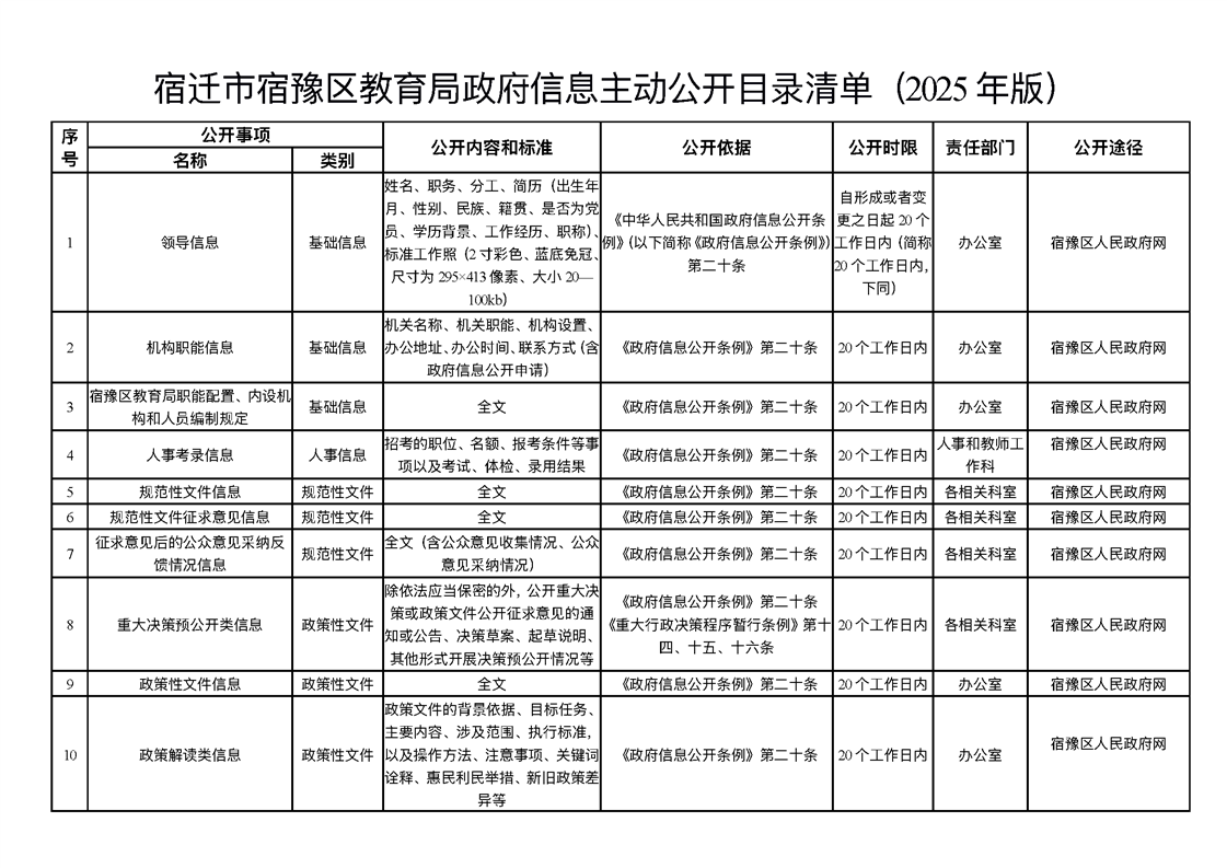 宿豫區(qū)教育局政府信息主動(dòng)公開目錄清單(2025年版)