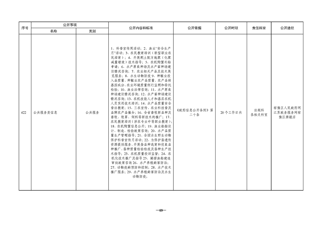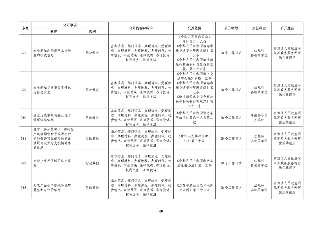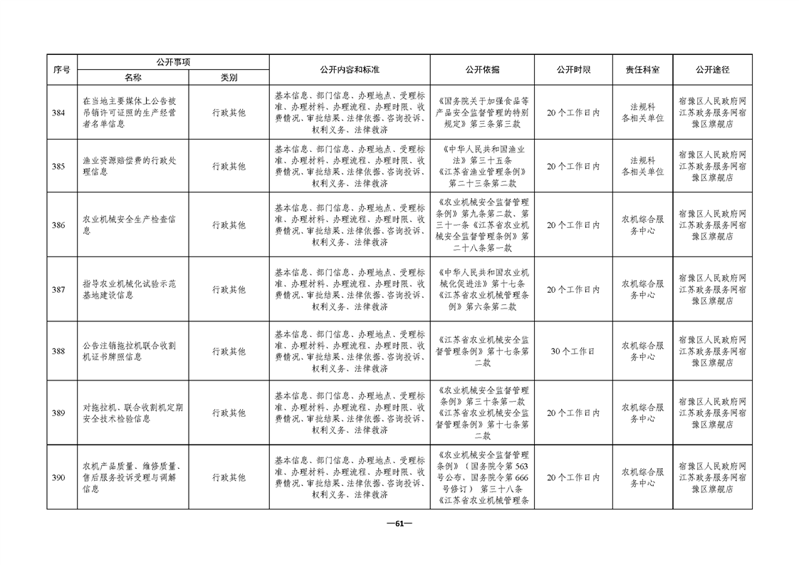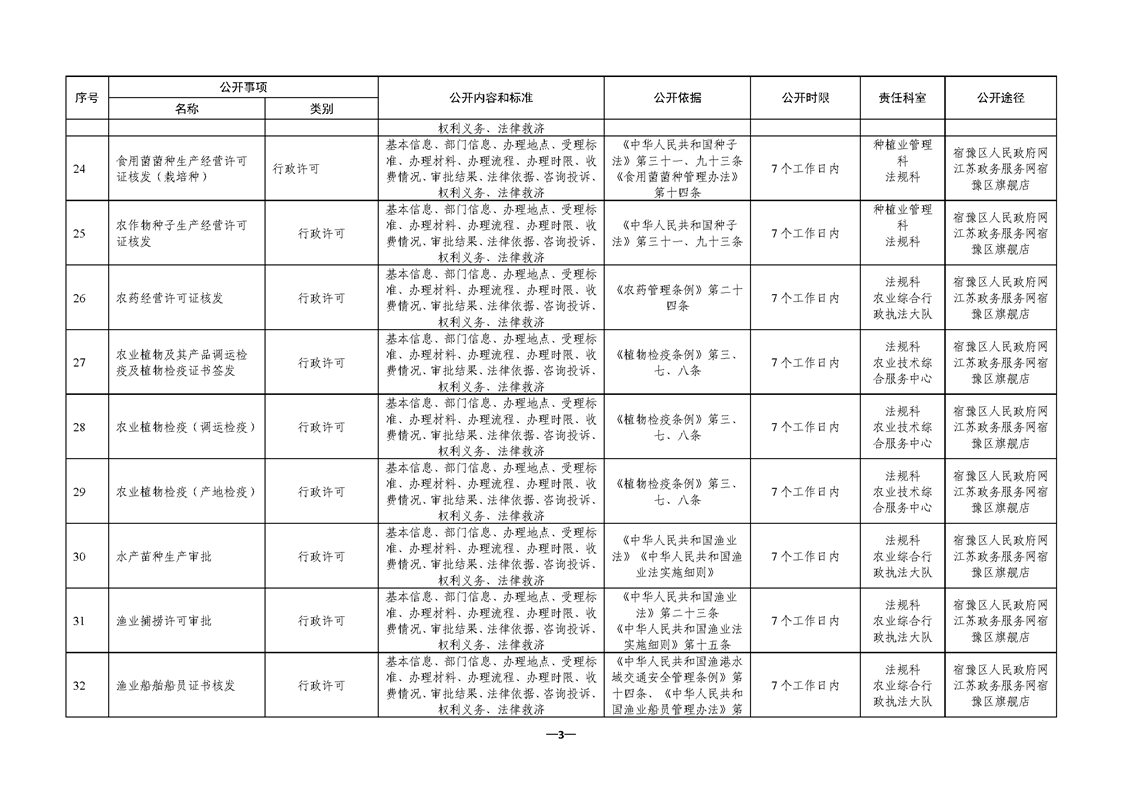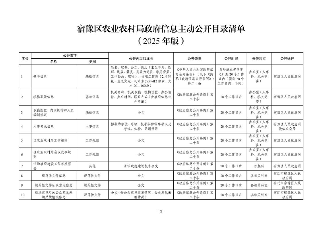 宿豫區農業農村局政府信息主動公開目錄清單(2025年版)