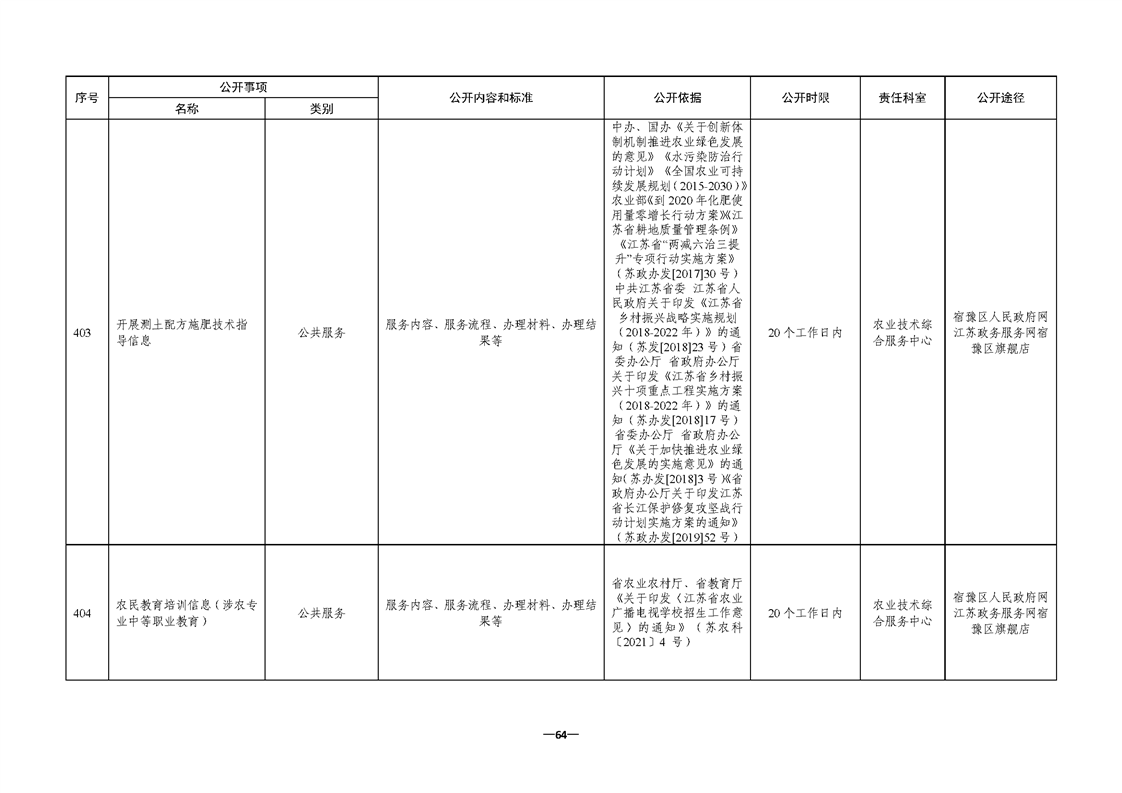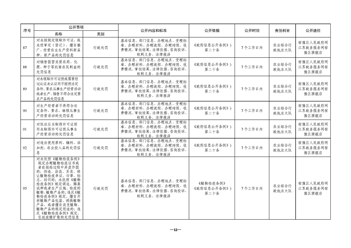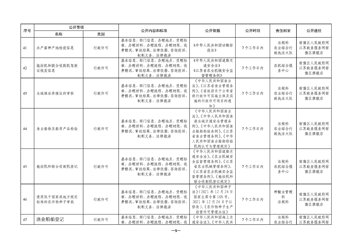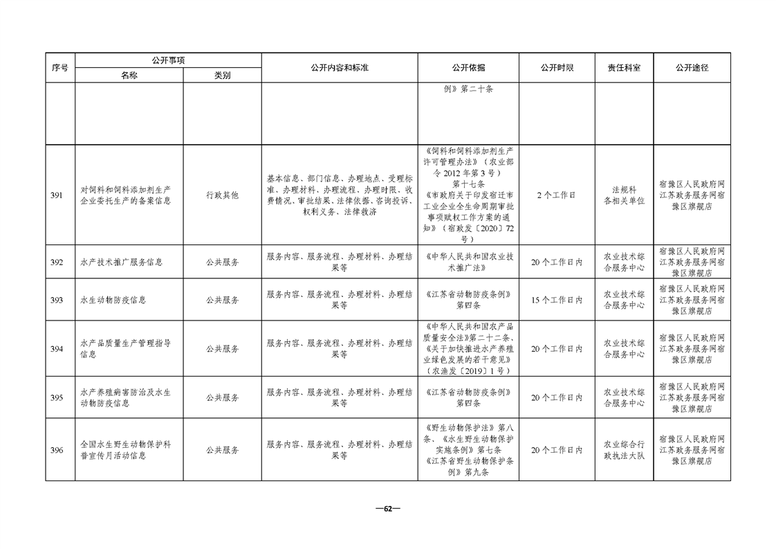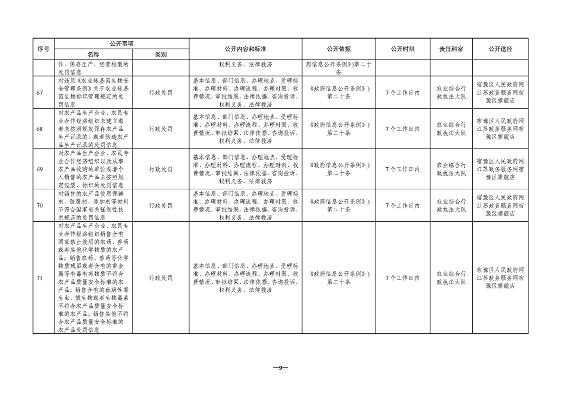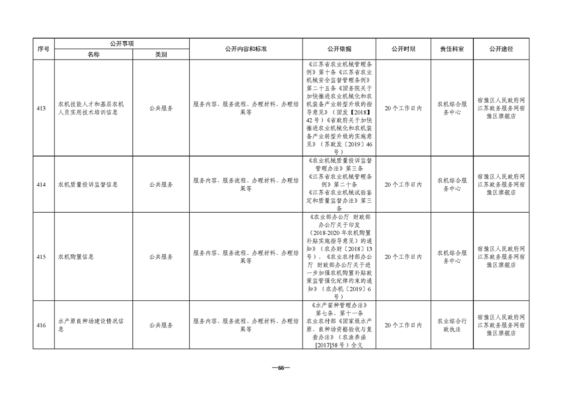 宿豫區農業農村局政府信息主動公開目錄清單(2025年版)