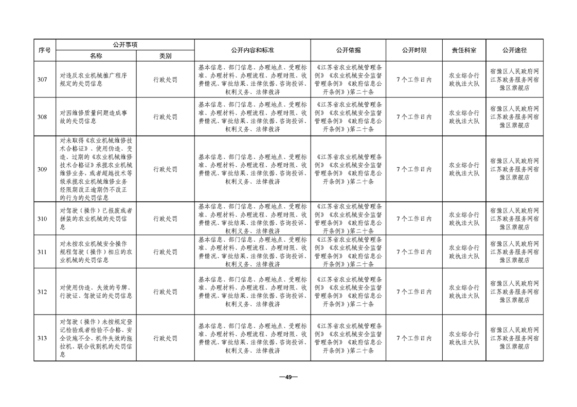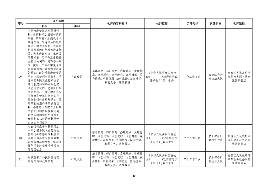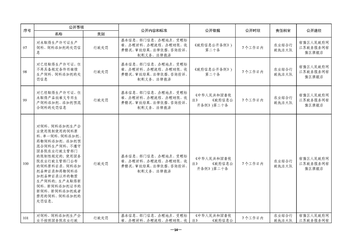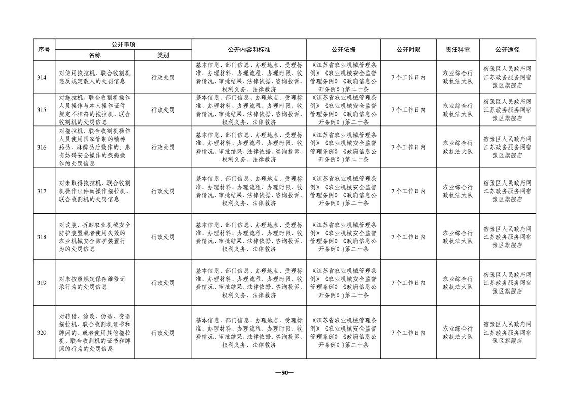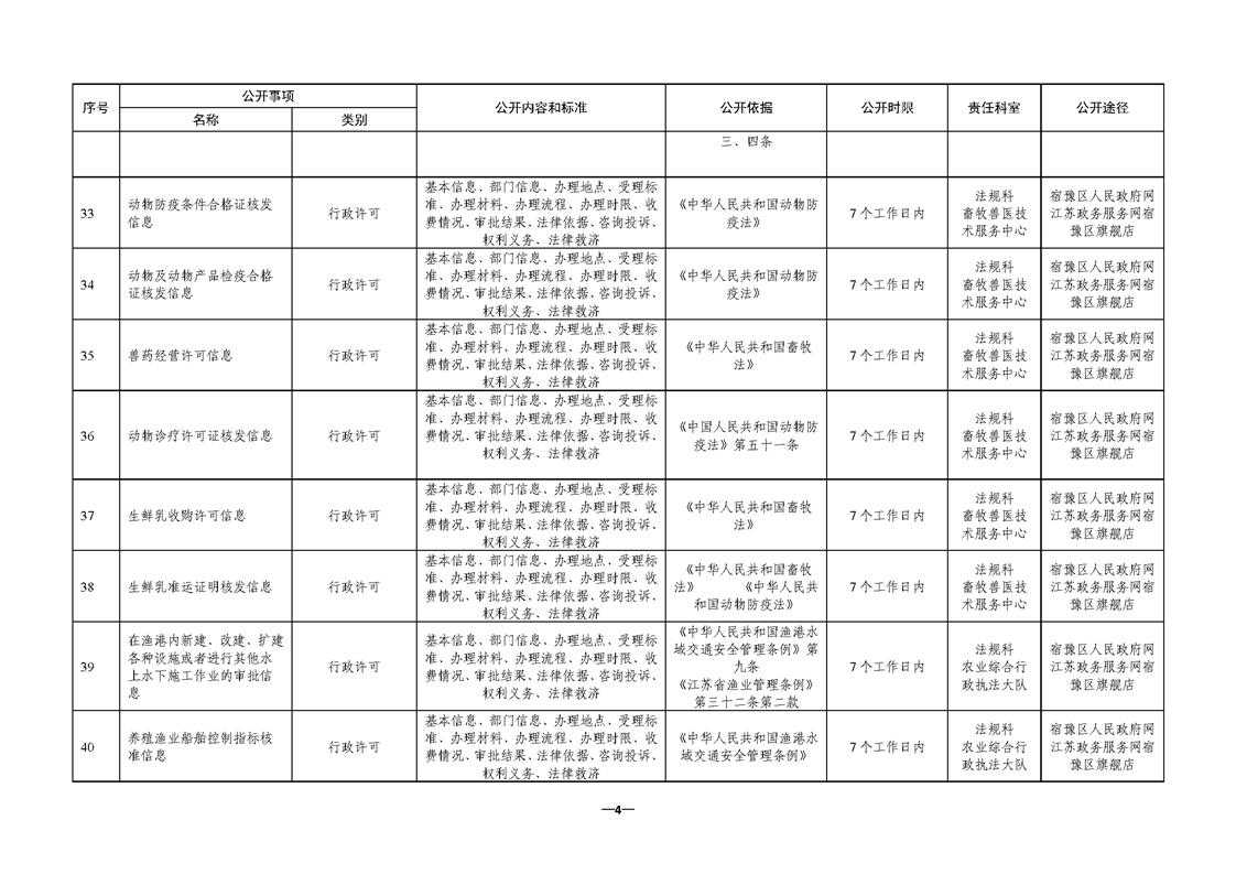 宿豫區農業農村局政府信息主動公開目錄清單(2025年版)
