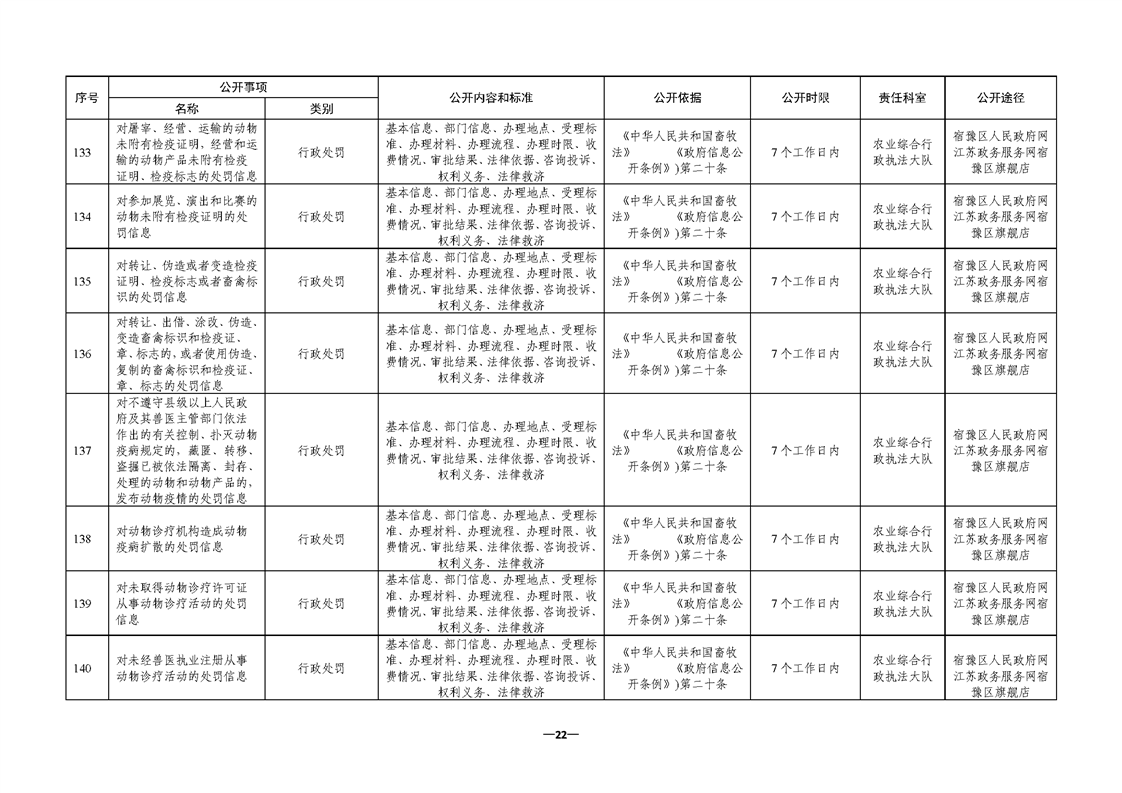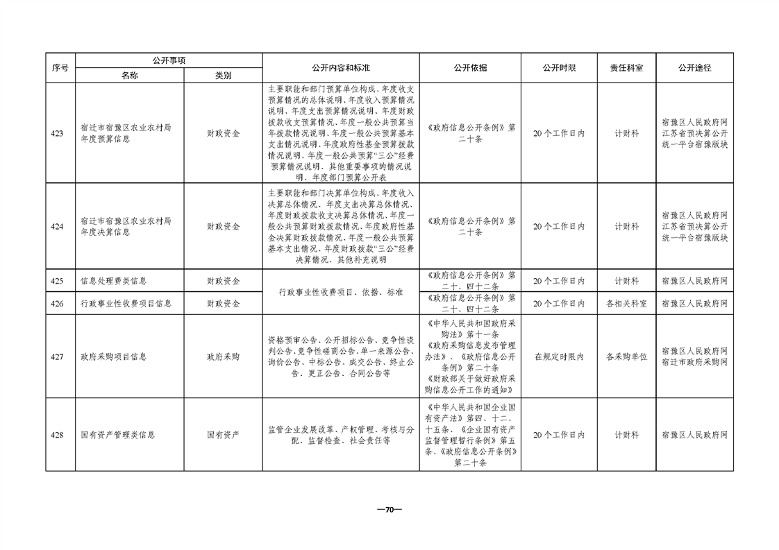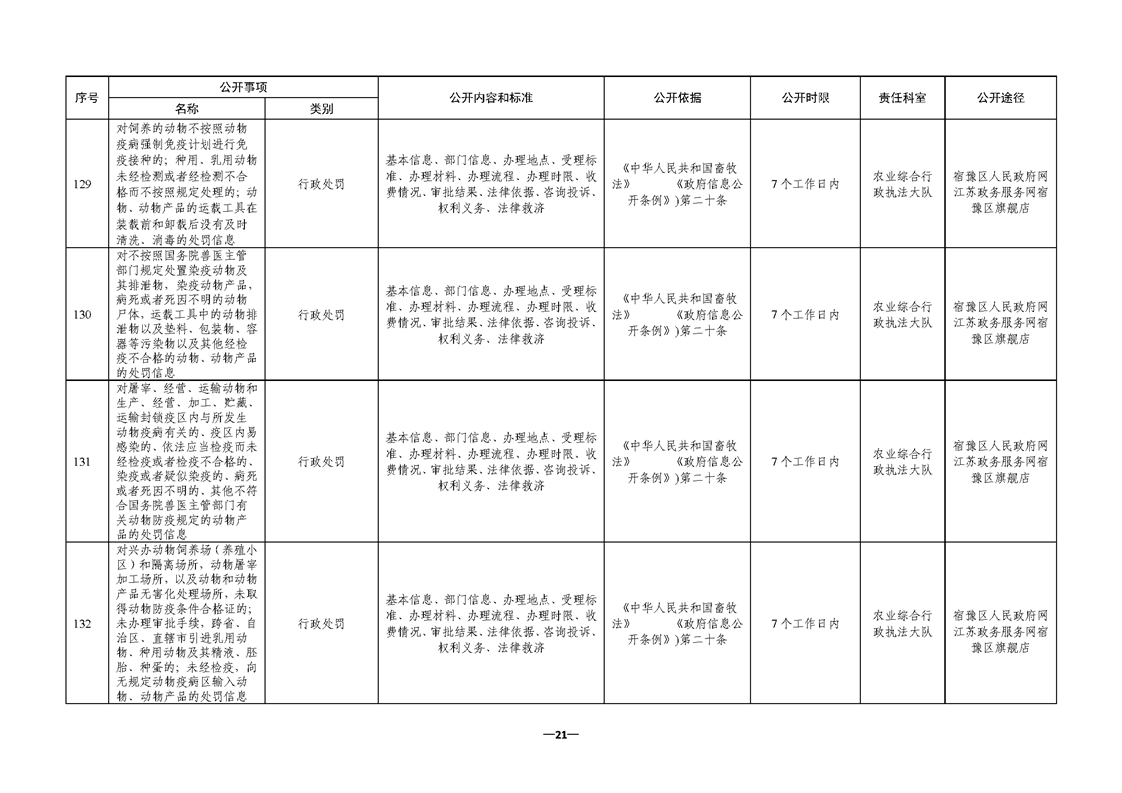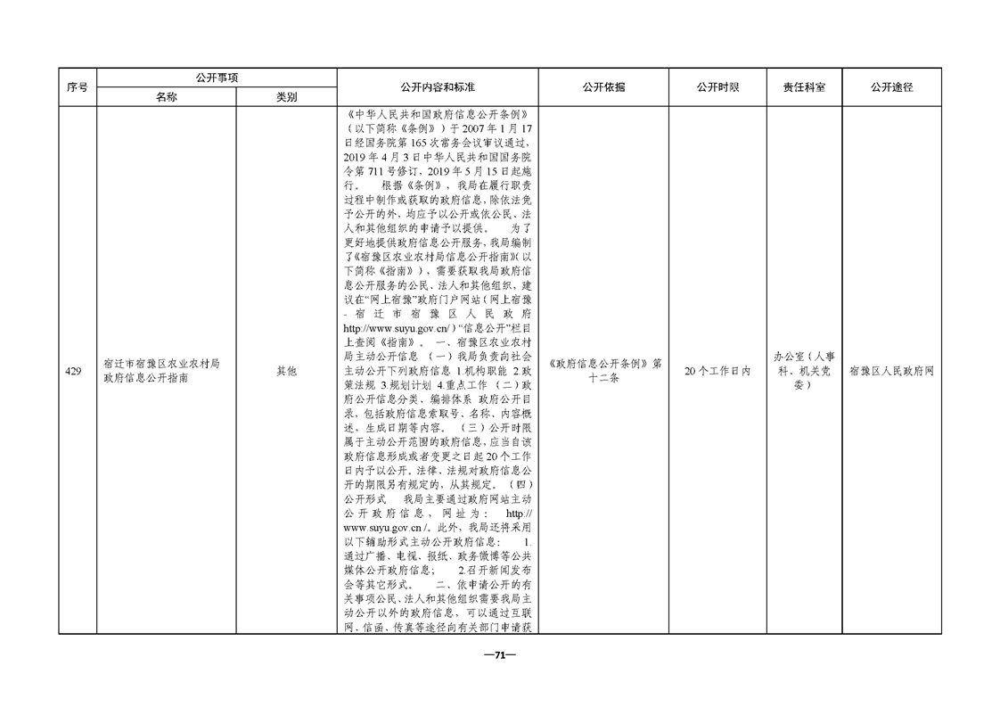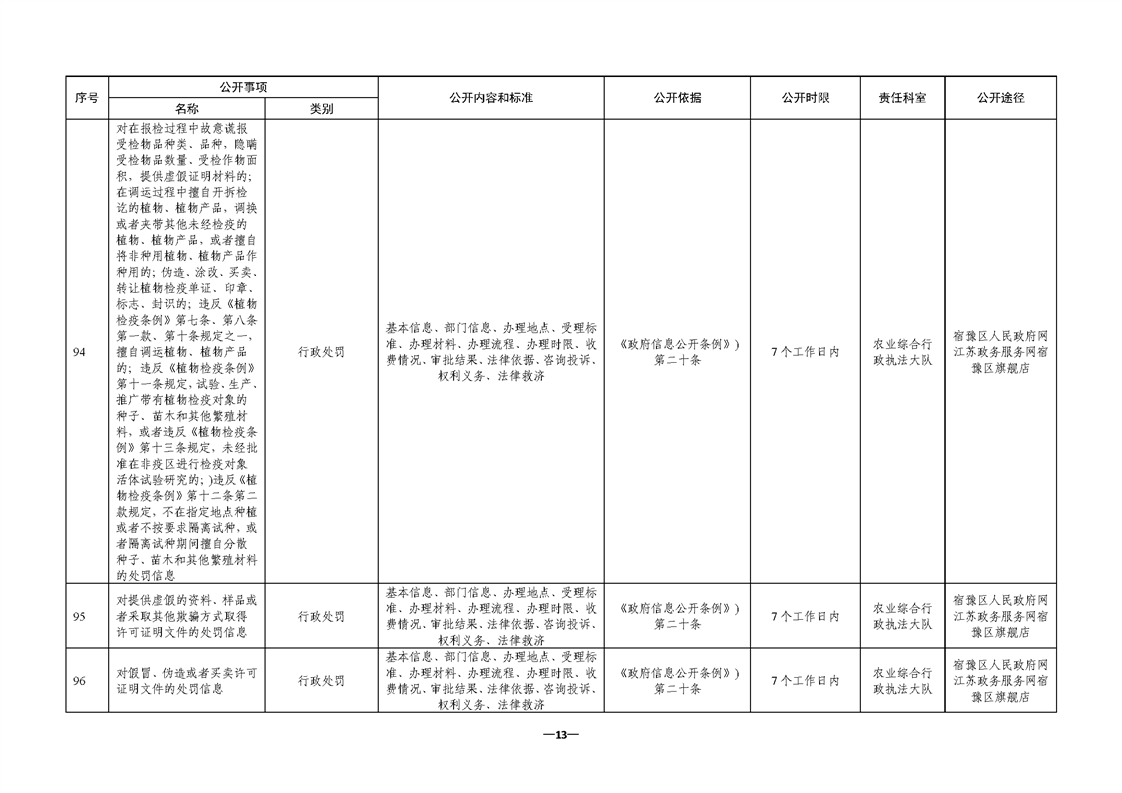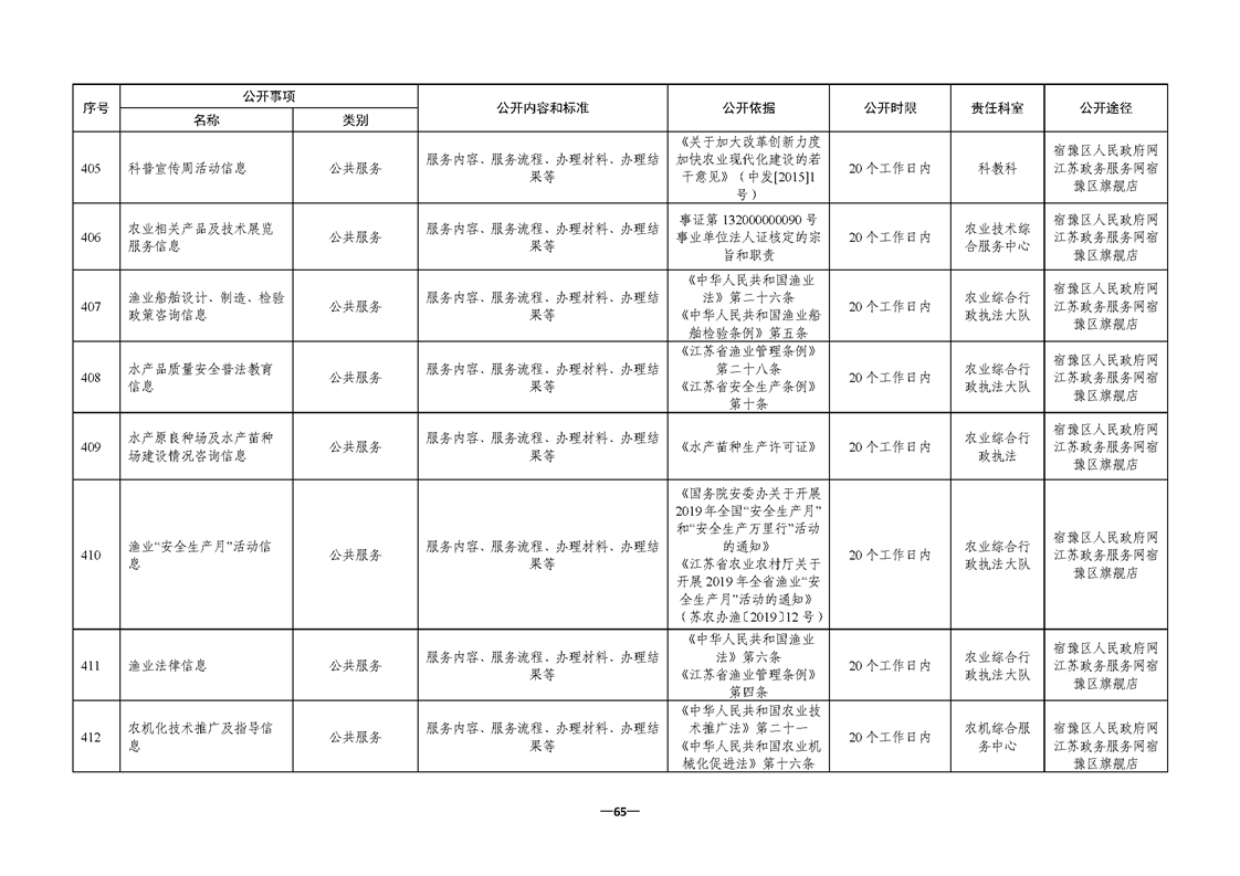 宿豫區農業農村局政府信息主動公開目錄清單(2025年版)