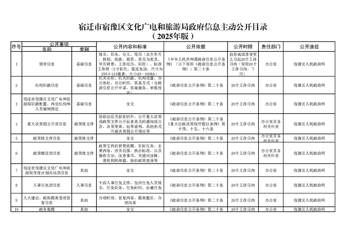 宿豫區文化廣電和旅游局政府信息主動公開目錄清單(2025年版)